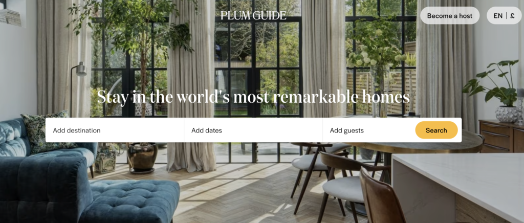 Why It’s Great: Plum Guide offers a handpicked selection of the top 3% of properties in each market, so it’s a badge of honor to get listed here. This platform is ideal if your property offers something truly special—think amazing views, architectural charm, or top-tier amenities. Plum Guide’s guests are willing to pay a premium for properties that meet its high standards.