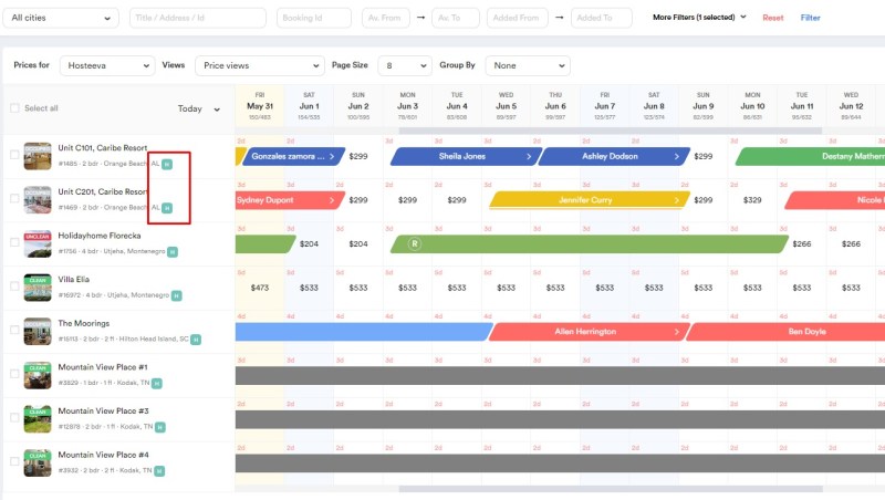 - Hosted properties are marked with an H icon on the timeline for quick identification.