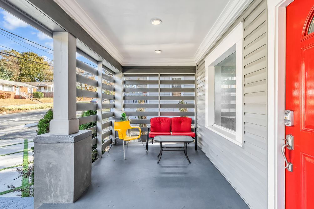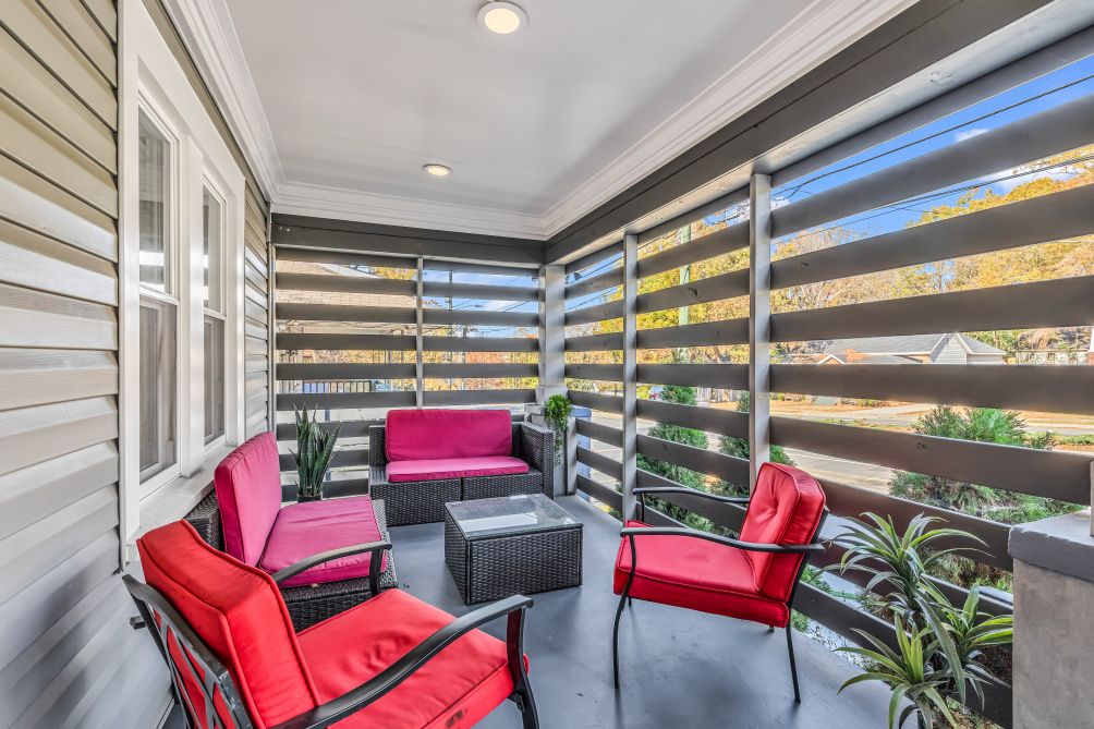 As you pull up to the driveway, you’ll be greeted by a perfectly manicured front yard with beautiful landscaping and architectural details of the house. Your front porch with a comfortable outdoor sitting arrangement is a perfect place to start your day with a cup of coffee or relax after a day of exploring this historic city.