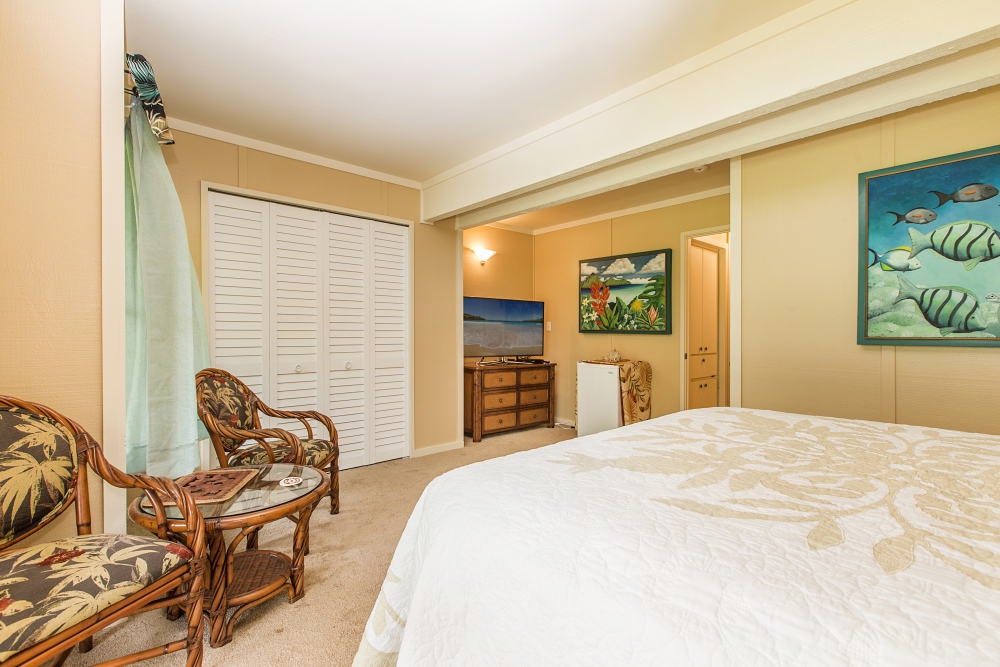 Recently upgraded and fully furnished throughout, this spacious condo includes a full kitchen complete with stove, oven, refrigerator, dishwasher, and microwave. Bedrooms are comfortably furnished with beautiful new crisp linens, pillows and bed coverings. There is a built in bar off of the kitchen for you to entertain your guests during the big game that you can watch on the large television in the living room. The spacious master bedroom offers a king bed with its own large private master bath and lanai. The second bedroom offers you a queen size bed. Spacious indoor living space, HDTV, free high-speed WiFi, free onsite parking and private access.