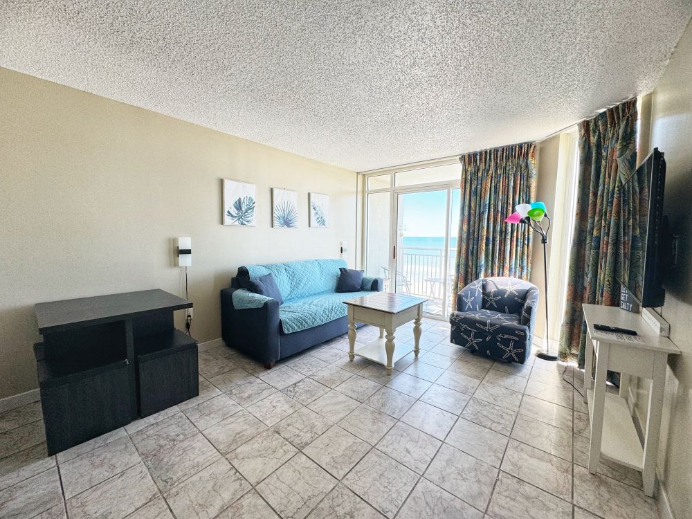Discover the epitome of coastal relaxation at the Atlantica OceanFront 1BR Condo in Myrtle Beach, SC. This charming retreat offers a private balcony with breathtaking oceanfront views, perfect for unwinding with the soothing sounds of the waves. The condo features a cozy bedroom with two queen beds and a convenient murphy bed in the living area, ideal for families or small groups.