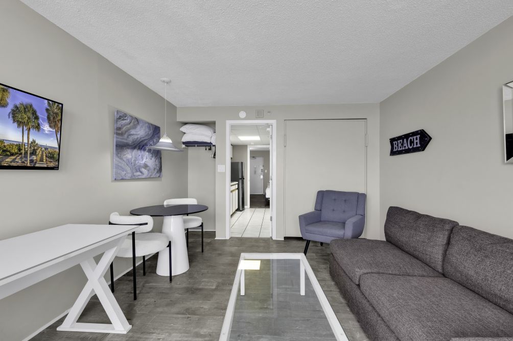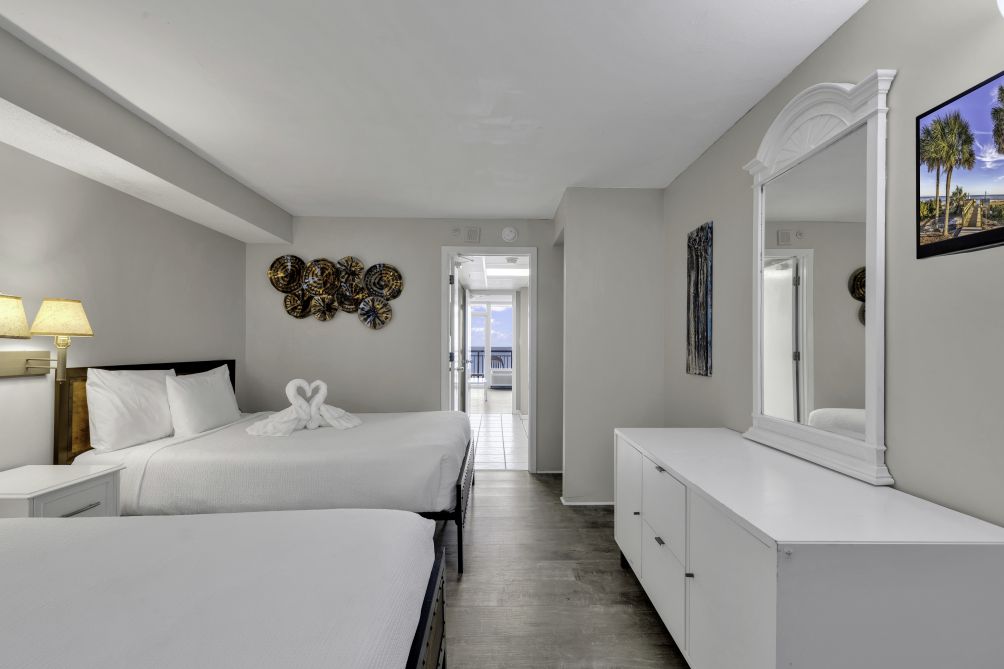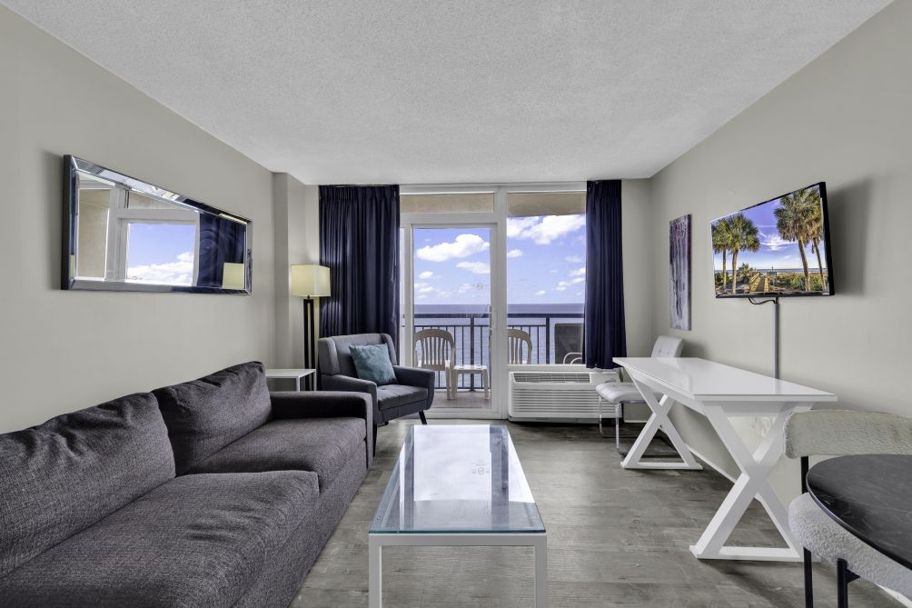 This light-filled Boardwalk Beach Resort comes with a private balcony and is located straight on the ocean in the heart of Myrtle Beach, SC.