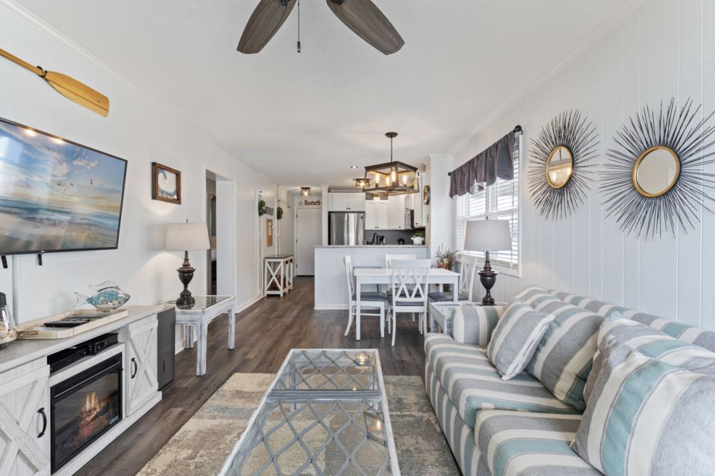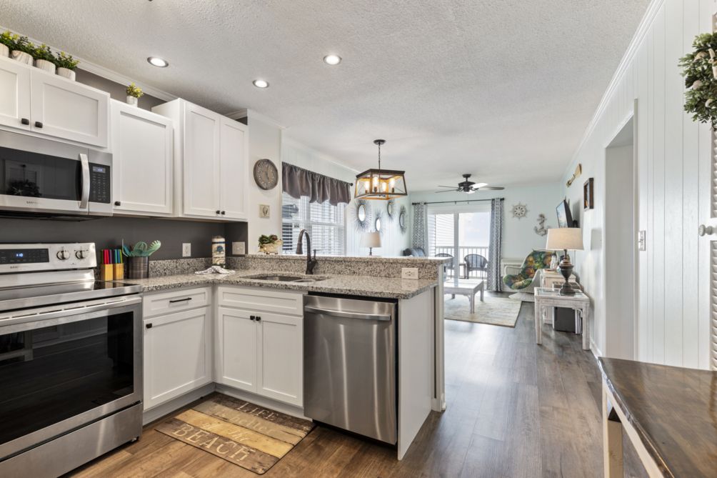 The condo with a charming nautical design has 2 spacious bedrooms with plenty of sleeping arrangements The unit boasts a gorgeous flooring upgrade, stainless steel appliances, and excellent decor with an amazing view that will keep you in awe.
