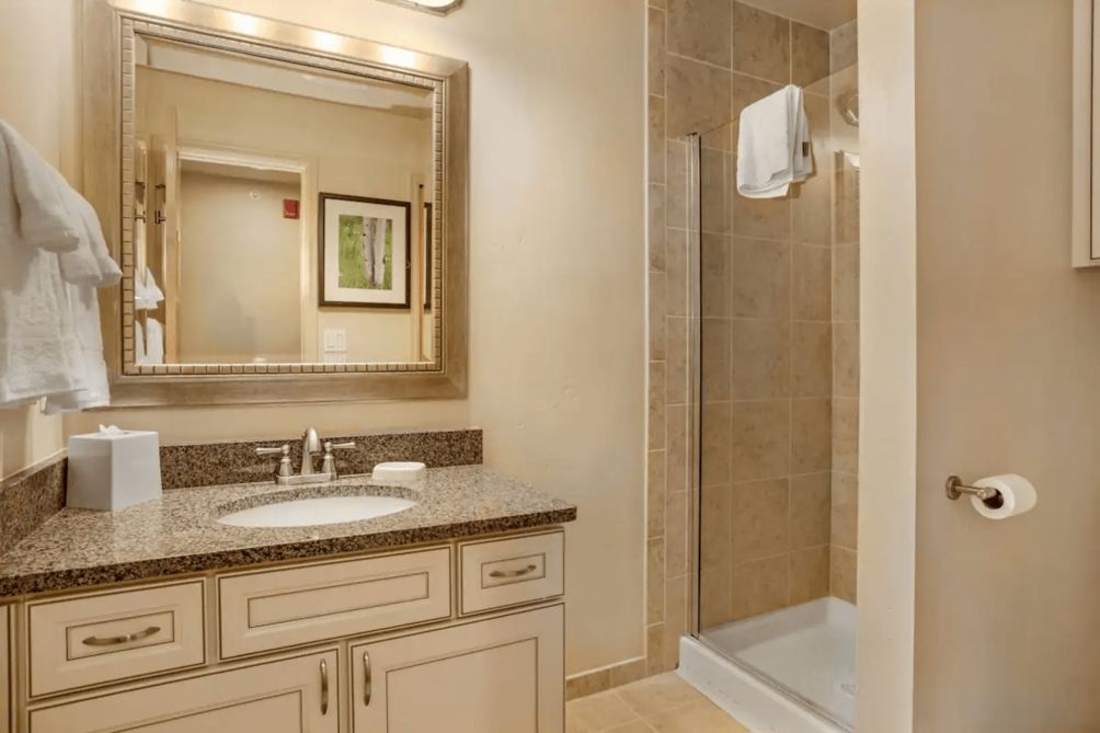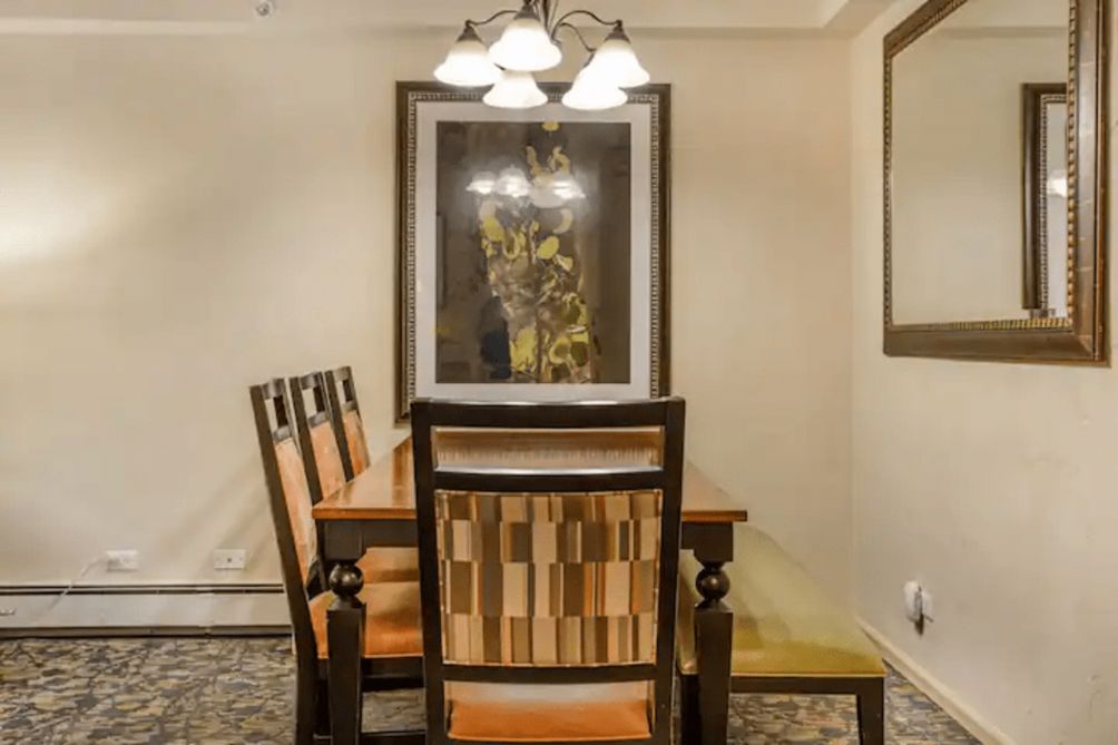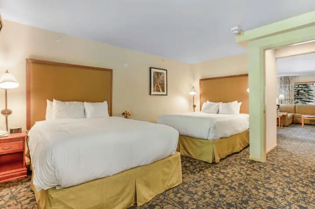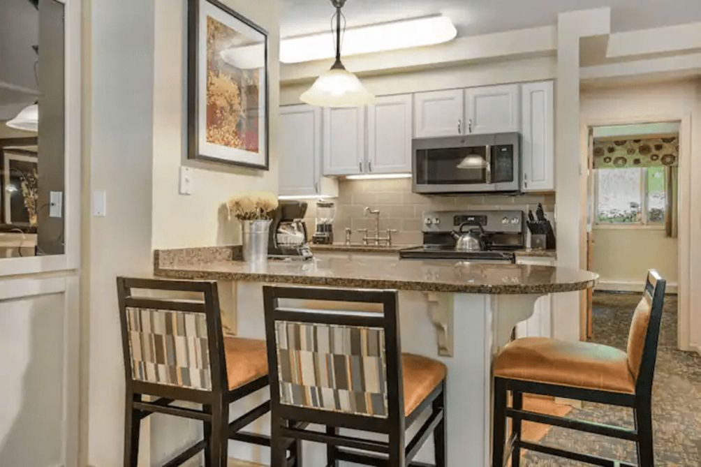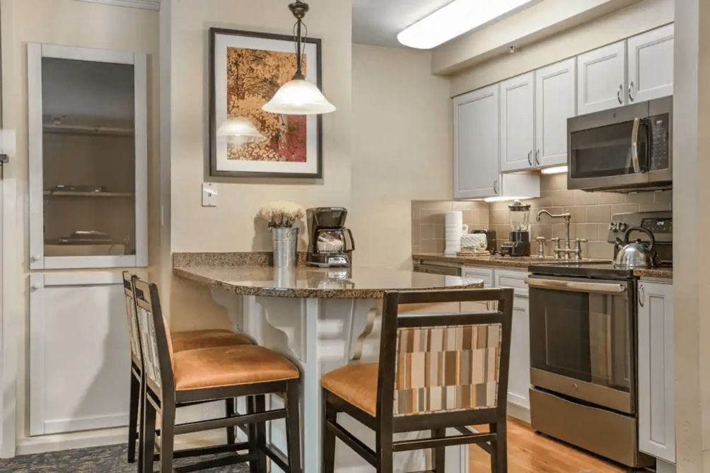 The apartments at Vail have separate living and sleeping areas with large windows viewing the hotel's surroundings. The kitchen is equipped with a stove, dishwasher, and all the necessary silverware and serving dishes.