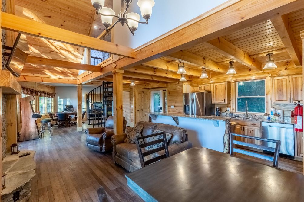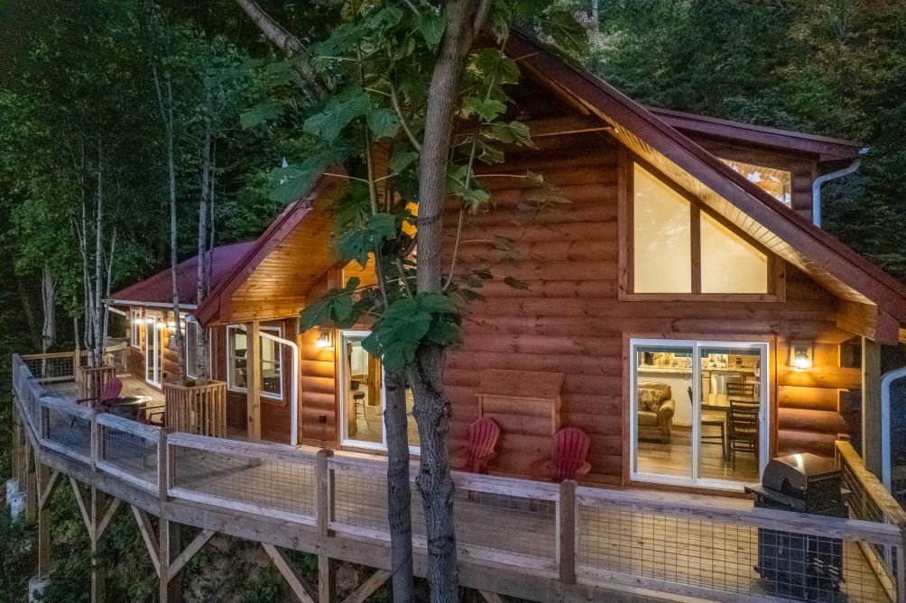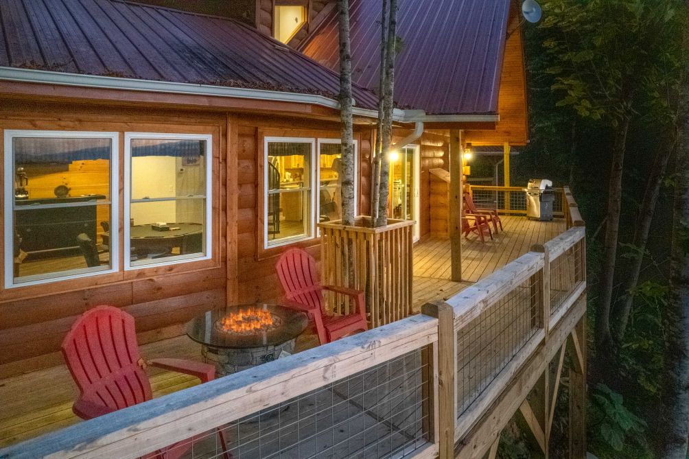 If you decide that this cabin is the place to be and you don’t need to venture out, you’ll find yourself on a beautiful patio and balcony, sitting back in a rocking chair, sipping some team or coffee and enjoing the fresh mountain air.