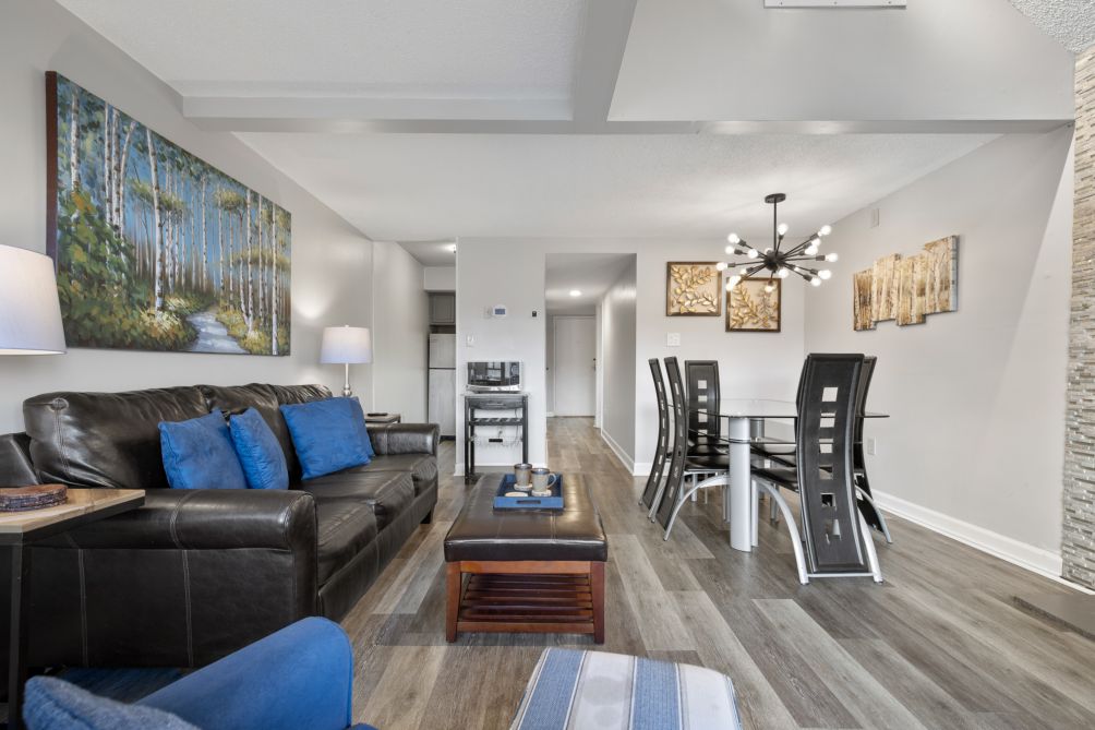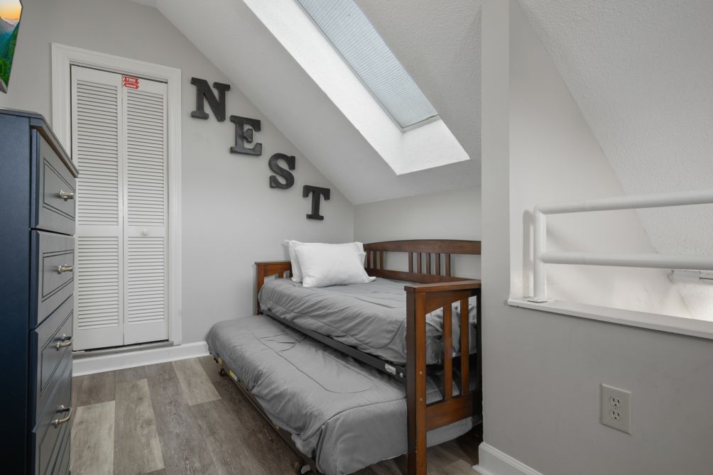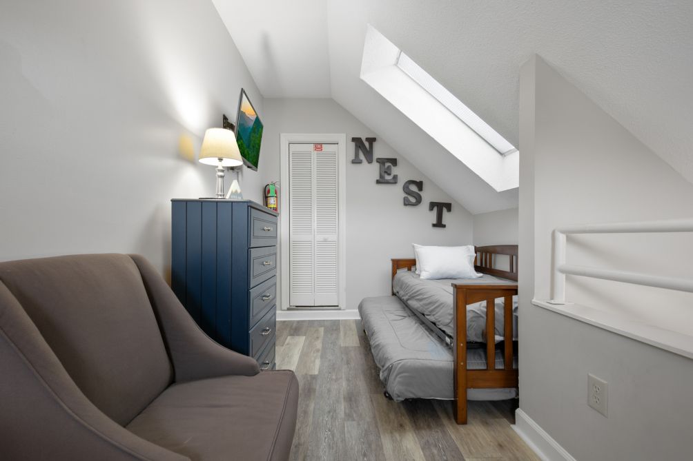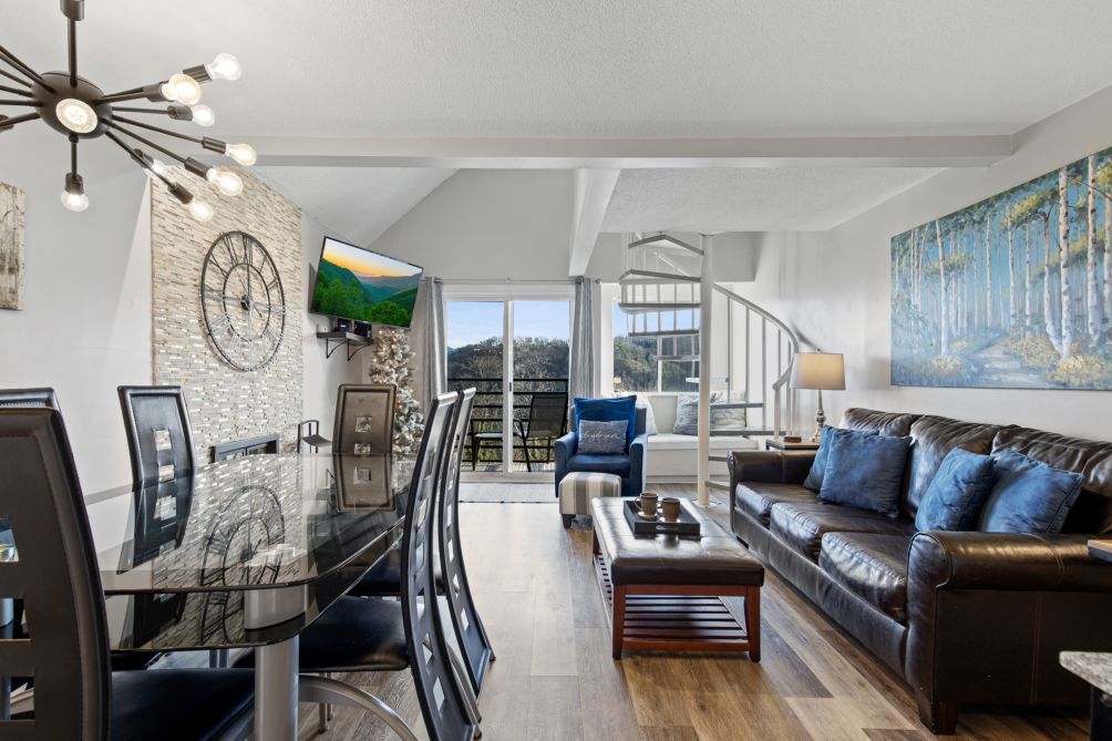 This recently remodeled condo features a fully stocked kitchen that’s perfect for a home-cooked meal. The beautifully decorated space features a modern design with a gorgeous, stacked stone fireplace and a spiral staircase leading up to the second level loft with skylight. Curl up and read a book in the cozy window seat, or enjoy your favorite show on one of the 4 flat-screen smart TVs throughout the unit. Spend the day hiking through Smoky Mountain National Park, or skiing at the amazing ski resort that sits right on the edge of the property. Head to downtown Gatlinburg or Pigeon Forge where you’ll find endless restaurants, year-round ice skating, the Tennessee Aquarium, Ripley’s Believe It or Not, Dixie Stampede, Dollywood, and so much more. Don’t forget about the Space Needle observation tower and the Sky Lift.