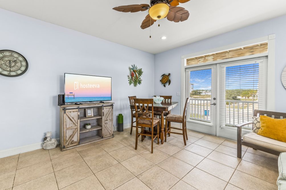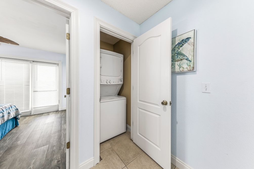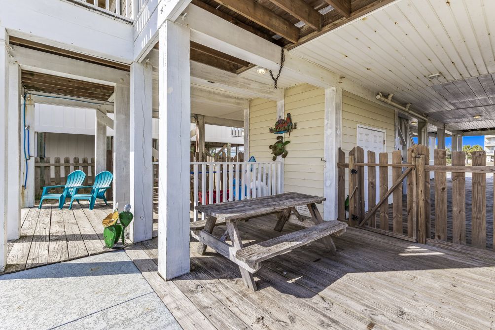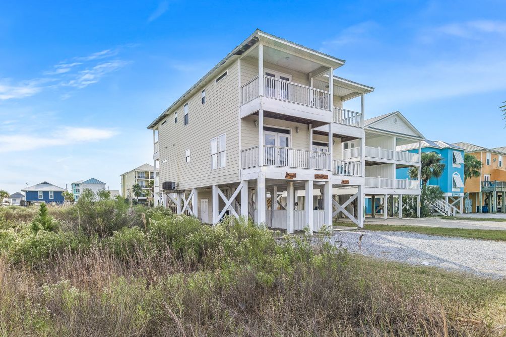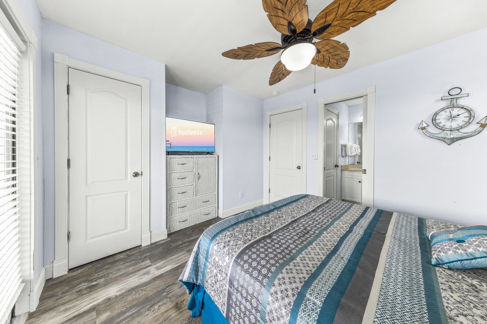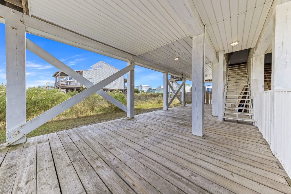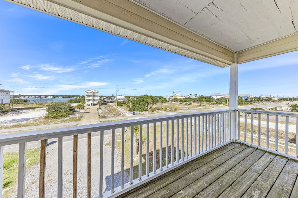 Upstairs you will find built-in bunks beds. On the side of the house is the second guest bedroom with Queen Bed, private bathroom, closet, and private balcony that overlooks the volleyball court, and peek-a-boo views of the gulf. On the North side of the upstairs is the Master Bedroom with King Bed, Private Bathroom, closet, and private balcony with views of Little Lagoon.
