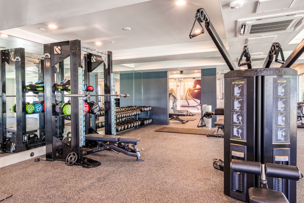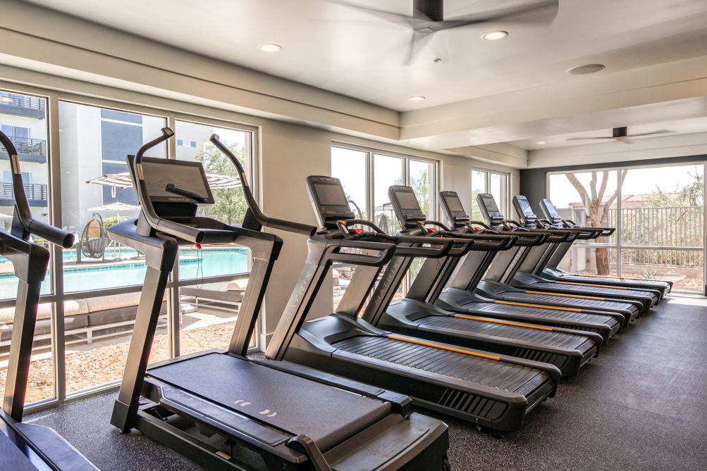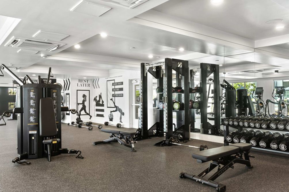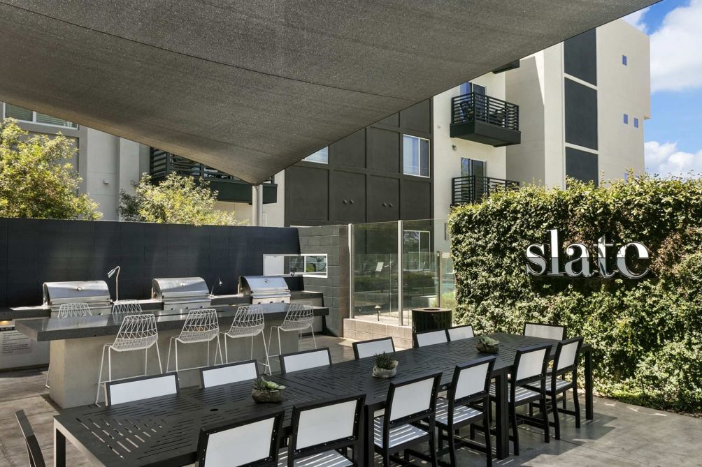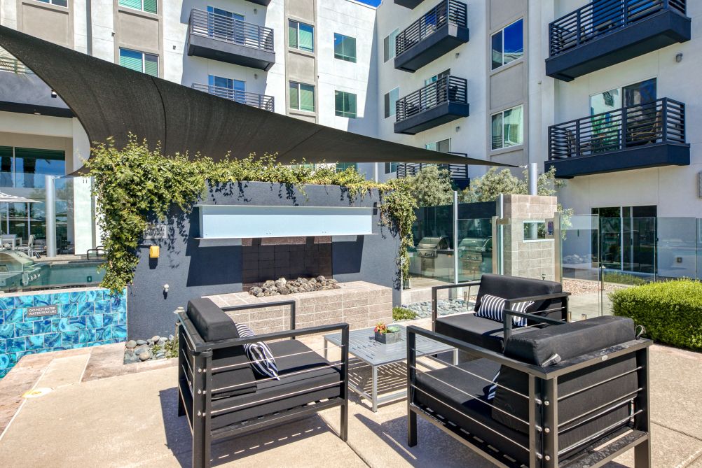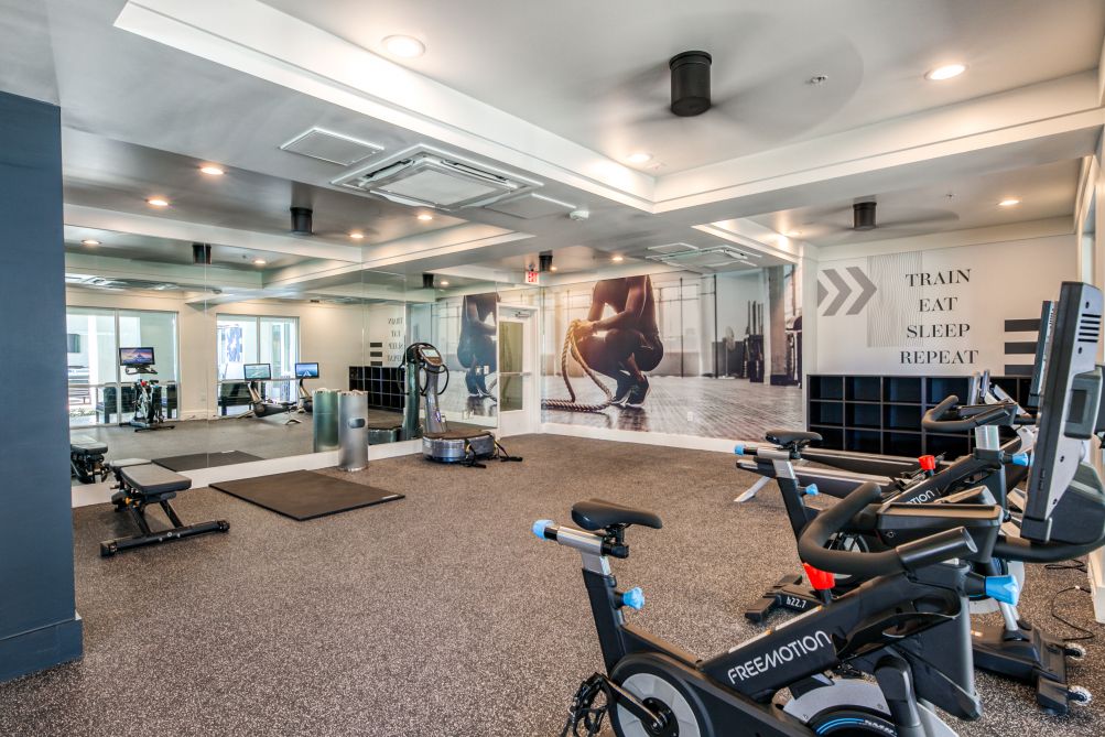 The gated community features a heated pool and spa, 24-hour state of the art fitness center, interior and exterior pool tables and shuffleboard, and even kombucha and cold brew on tap!