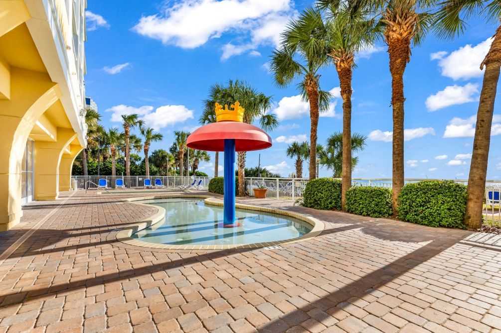 • Take a dip in the outdoor pool and let the kiddos enjoy the kiddie pool with a mushroom water fountain