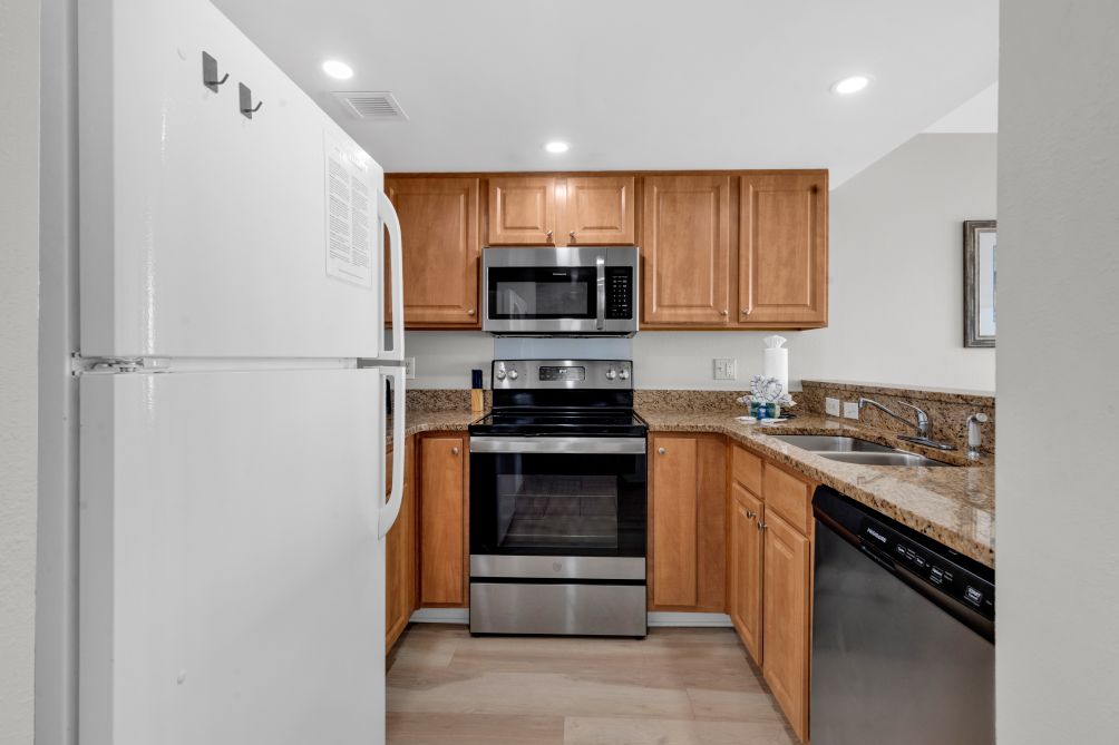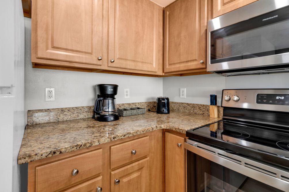 • Fully-furnished kitchen with major appliances and cookware