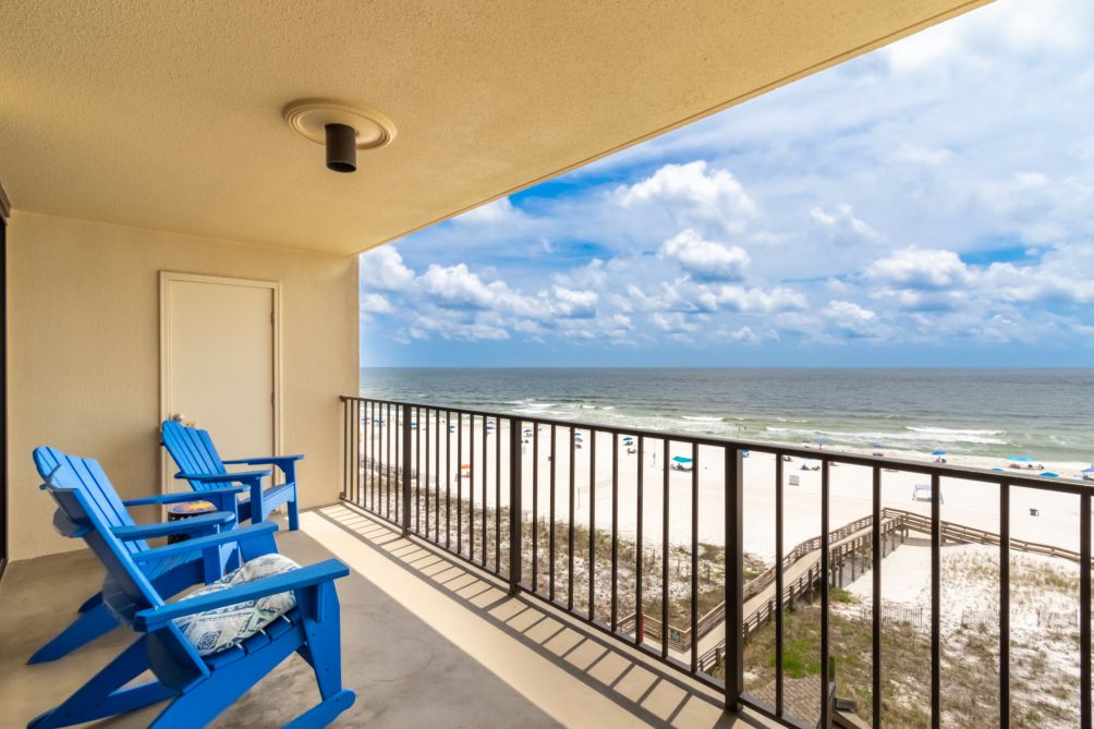 • Balcony with charming outdoor furniture overlooks gorgeous Gulf front view