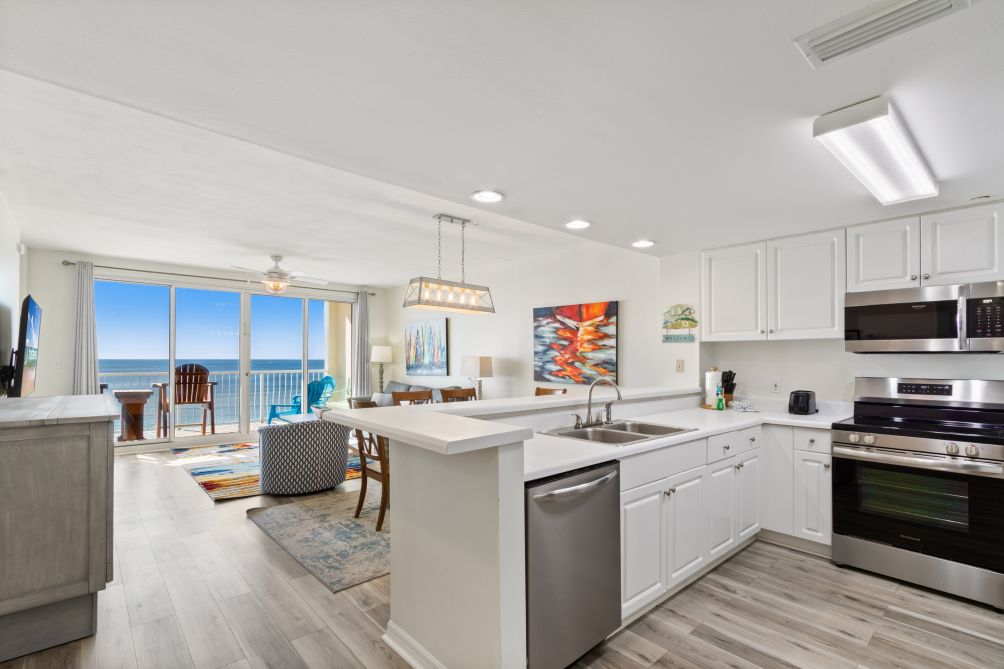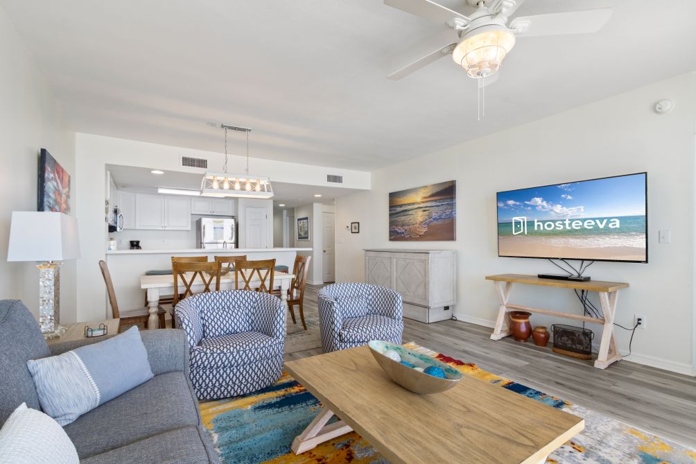 When you arrive, you will be welcomed by the cool comfort plank floors leading into the large, open living area.