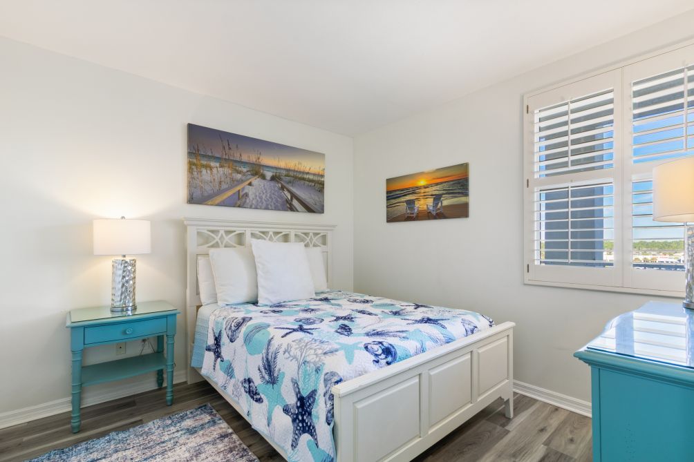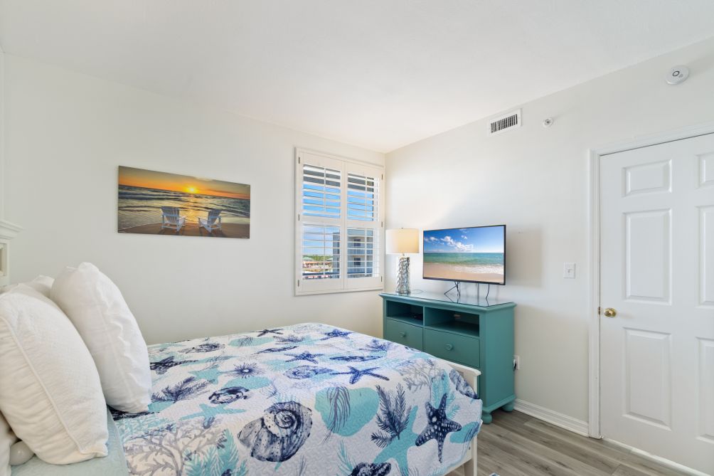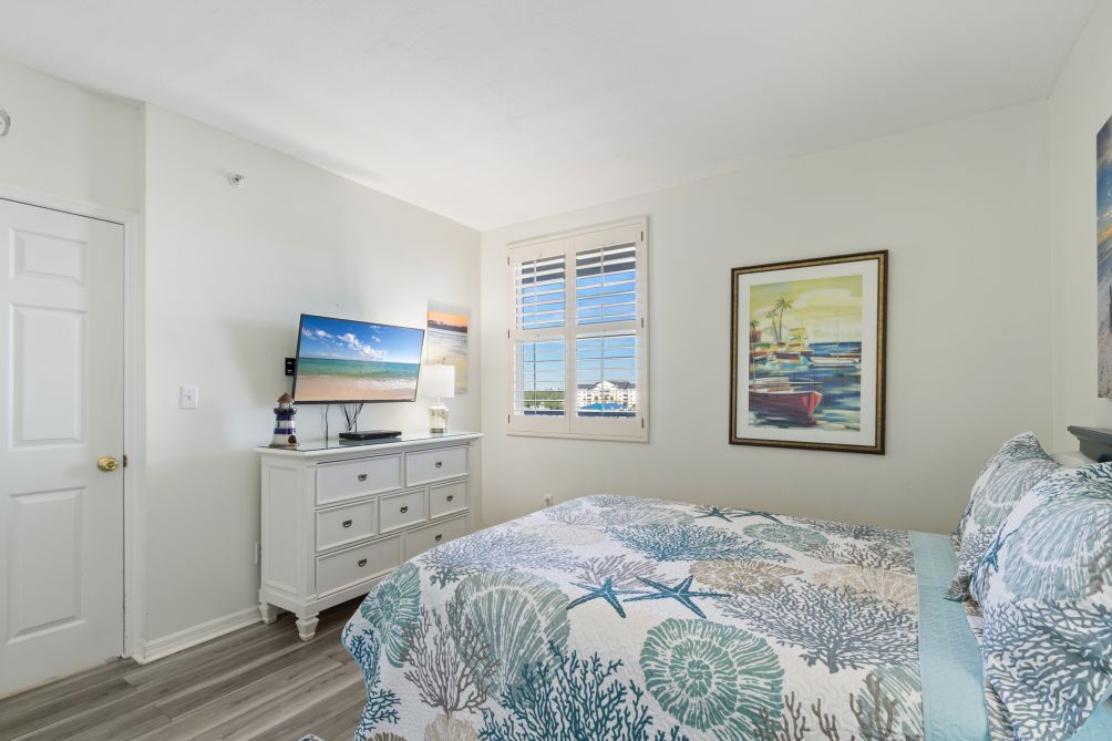 Bedroom Three also contains a queen-sized bed, chest, night stand, and 22-inch LED HDTV. There is also plenty of closet space.