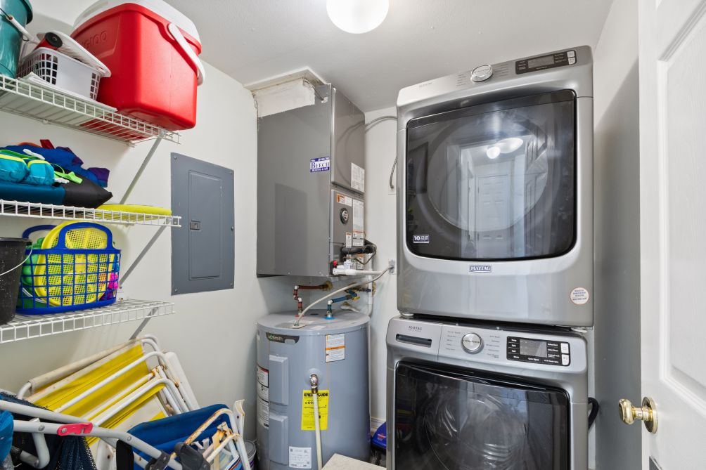 The large, laundry room contains a extra-large capacity Maytag front loading washer and dryer and additional storage space. A full-size iron and ironing board are also provided.