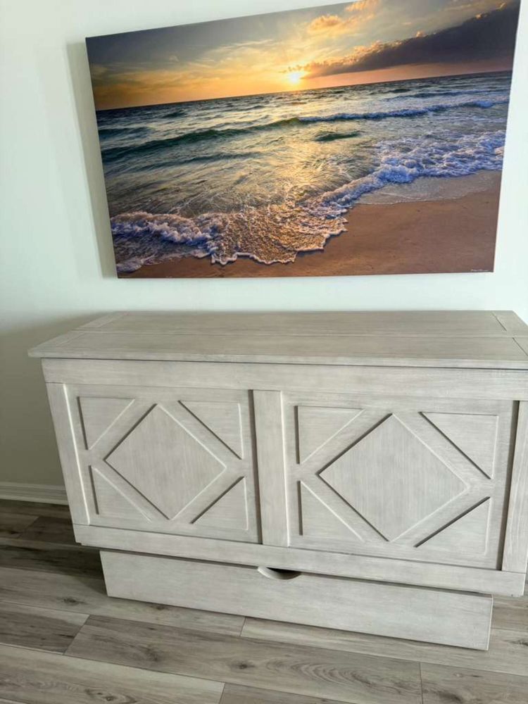 • There is a queen sleeper cabinet in the living room.
