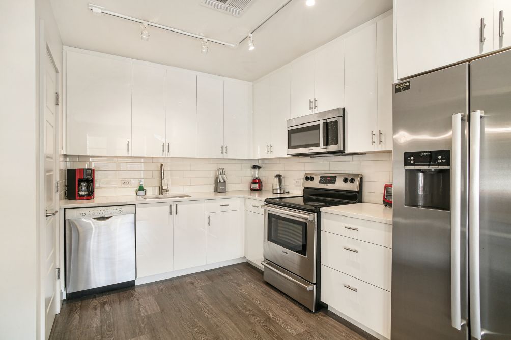 This modern and spacious 1 bedroom condo comes equipped with an amazing city view from the rooftop where you can enjoy your morning coffee or an afternoon cocktail, modern design with high ceilings, full kitchen and bathroom amenities, bedroom with walk-in closet, a full bathroom and a spacious living room with a soft pull out sofa.