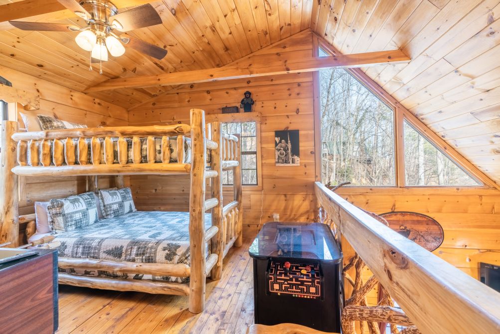 Beautifully situated among the trees with lovely details of natural wood and stone throughout, this secluded home boasts a perfectly cozy feel just two miles from downtown Pigeon Forge. Relax by the gas fireplace in the living room, settle in for a game of foosball, or spend an evening taking on all comers at the retro arcade game table in the loft. Enjoy dinner outside on the deck after cooking your meal in the fully-equipped kitchen, and take in the Smoky Mountain air in the warmth of the private hot tub and the outdoor fireplace.