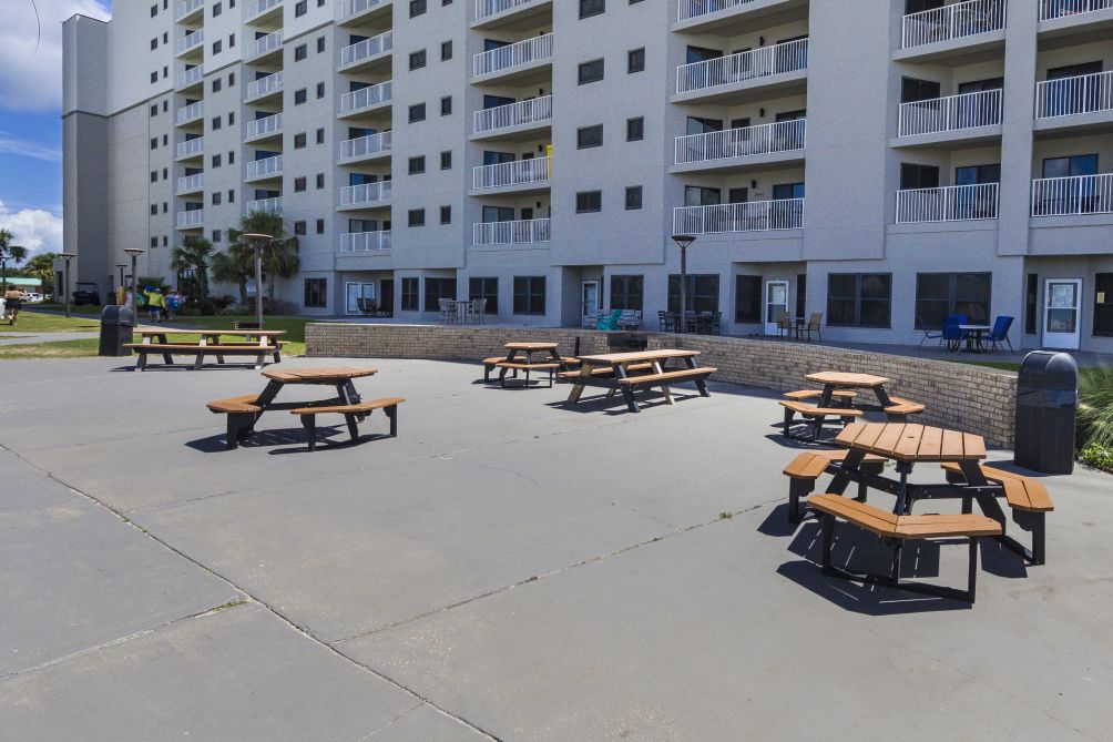 The Sassy Bass Tiki Bar and Grill located on the ground floor of this building offers delicious meals and refreshing drinks with stunning views of the surrounding landscape.