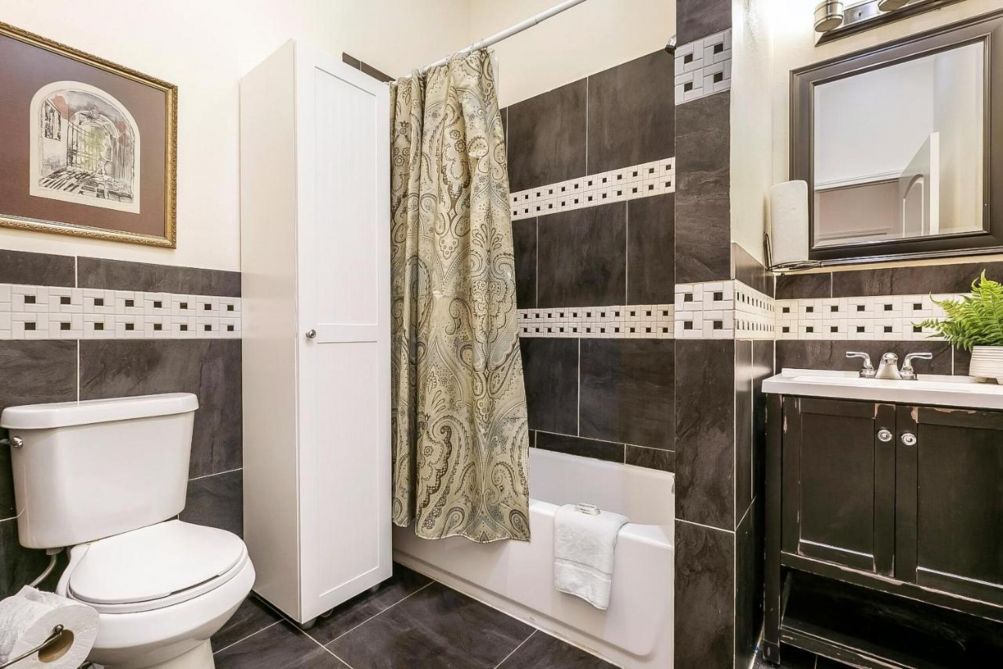 When it’s time to relax and unwind after a day of exploring the city, head to your master bedroom where you can grab a book or a glass of wine (or both) while cuddling up in a comfortable armchair. You can also relax in a king-size bed while watching TV. And to top the day with some major pampering, enjoy your master bathroom that features two vanity sinks, a shower stall, and a bathtub, plus granite tile throughout the entire bathroom.