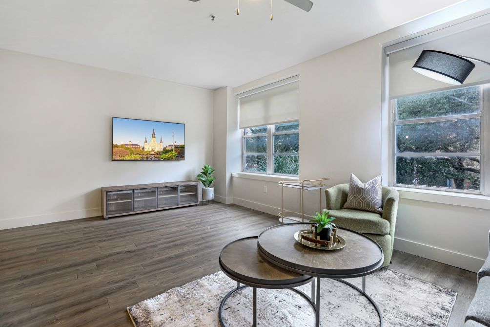 Only a block away from Canal Street gives you access to all kinds of public transportation. The convention center is just 1.6 miles away from the residence. Famous for its vibrant nightlife and colorful buildings, you’ll be steps away from Bourbon Street jazz clubs, Cajun eateries, bars and bistros. And if you prefer to say off the beaten path, quieter streets lead to the French Market, with gourmet food and local crafts. You can’t miss taking a stroll down Jackson Square where street performers put on unforgettable shows right in front of the gorgeous St. Louis Cathedral.