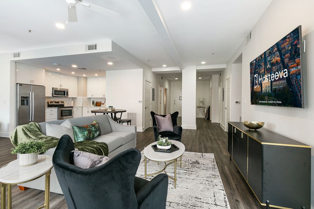 This elegant and spacious 4 bedroom condo by Hosteeva comes equipped with an amazing city view from the rooftop where you can enjoy your morning coffee or an afternoon cocktail, modern design with high ceilings, full kitchen and bathroom amenities, bedrooms with walk-in closet, full bathrooms and a spacious living room with a soft pull out sofa.