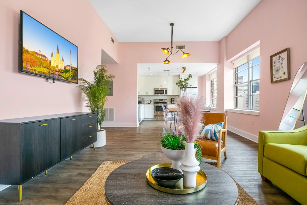 Only a 5-min walking distance to the city’s historic French Quarter, this California Building 4-bedroom magnificent condo by Hosteeva, fully furnished with custom interiors, modern appliances, a spacious balcony, and handpicked furniture, puts you right in the heart of jazz, food and celebration of life. Everything New Orleans is known for!