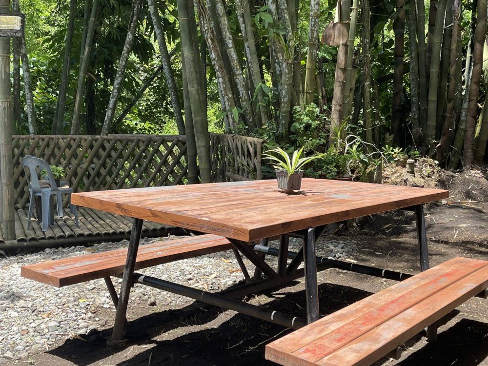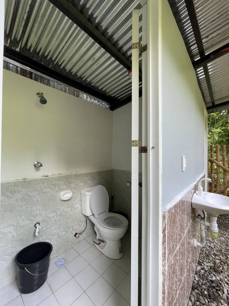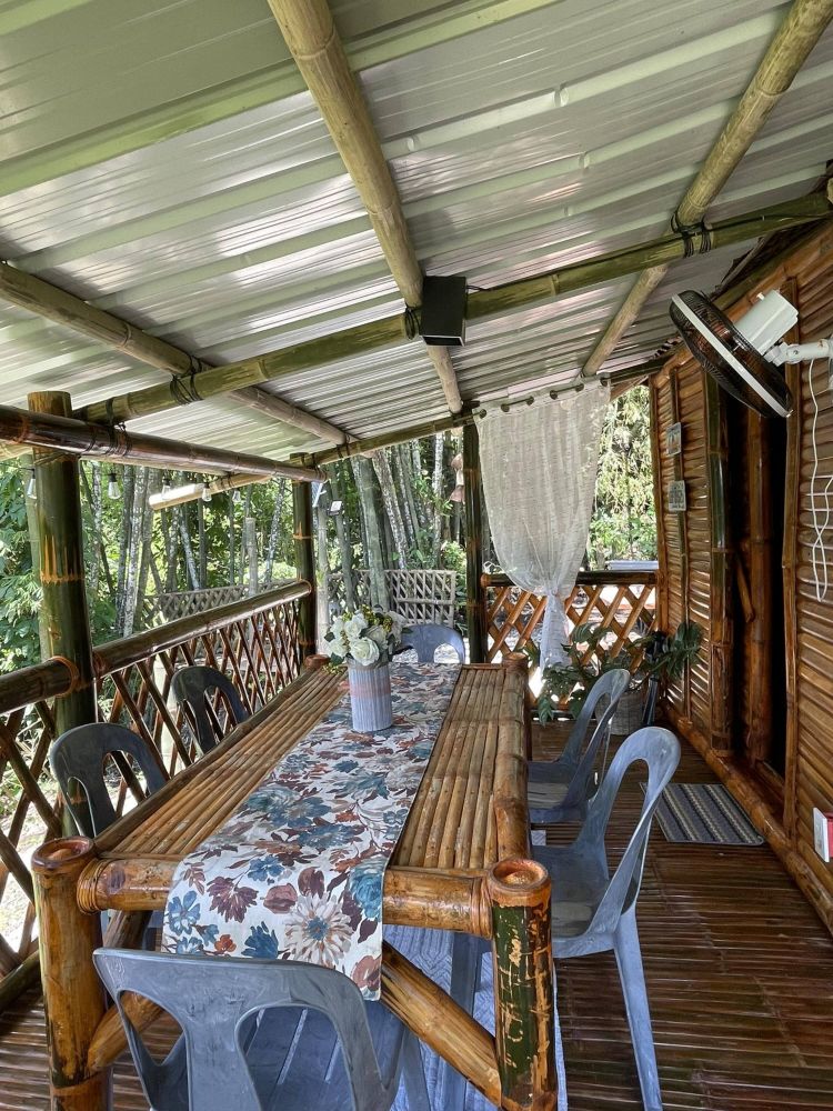 The Native House - This charming cottage offers two bedrooms, each equipped with two sets of bunk beds (one king-sized and one single-sized) in each room. The bathrooms are shared and located just outside the cottage, providing four bathrooms in total. These bathrooms include indoor showers and an outdoor shower conveniently situated near the pool. Constructed entirely from bamboo, the Native House boasts a spacious balcony with a generously sized bamboo dining table and an adjacent picnic table. Additionally, an observation deck provides a stunning view of the creek below.