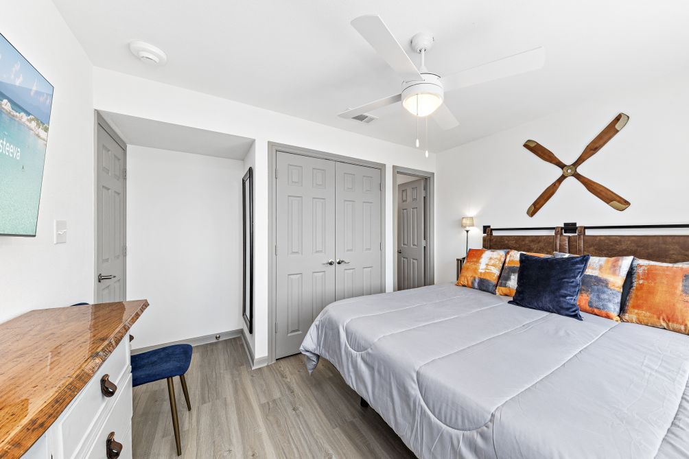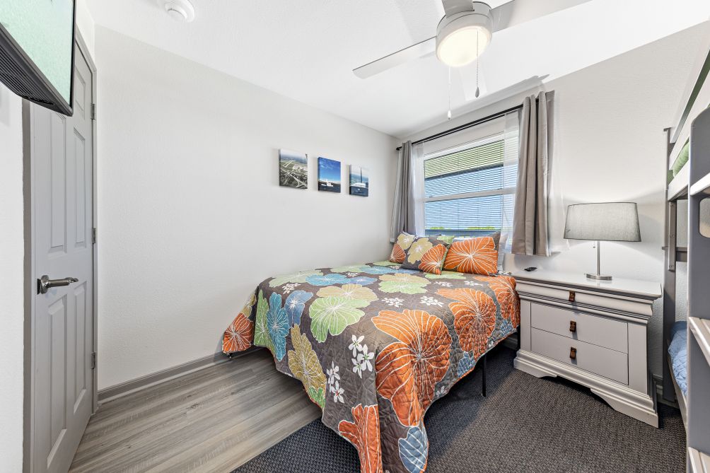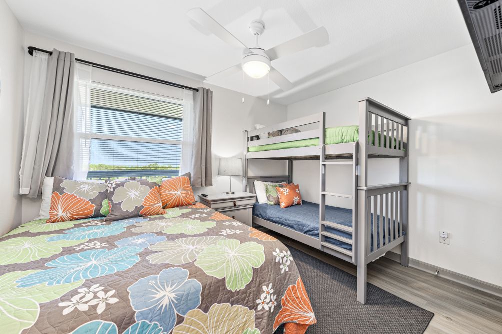 This 2-bedroom condo includes a private balcony and offers great views. You'll have access to incredible on-site amenities, such as indoor and outdoor pools, hot tubs, tennis courts, and more. The master bedroom features a king bed, while the other bedroom has a twin bunk bed and an additional queen bed, accommodating up to six guests comfortably.