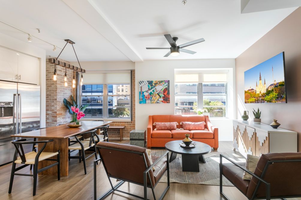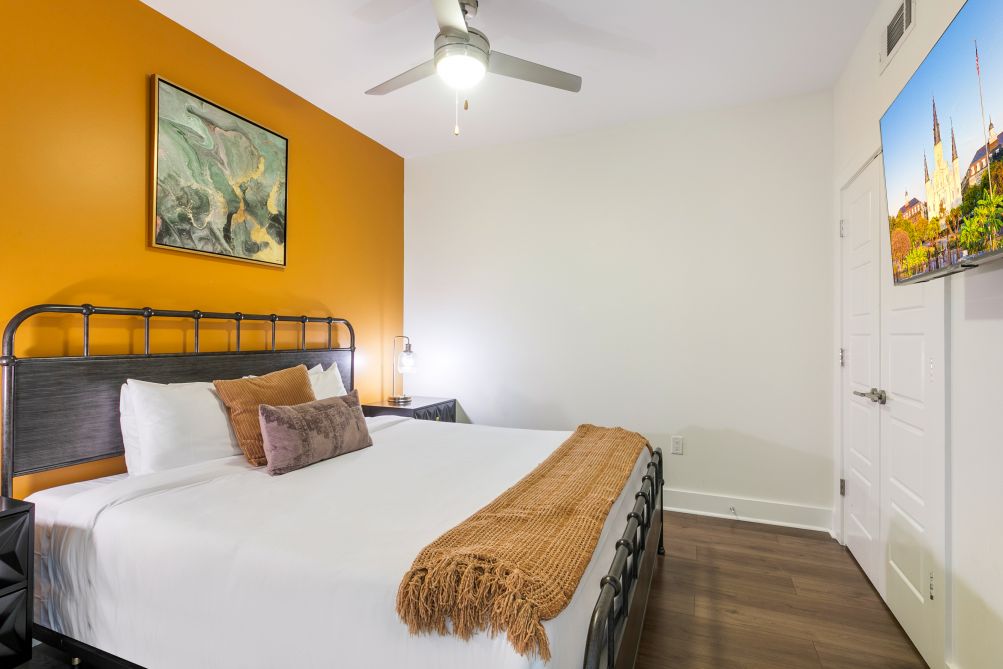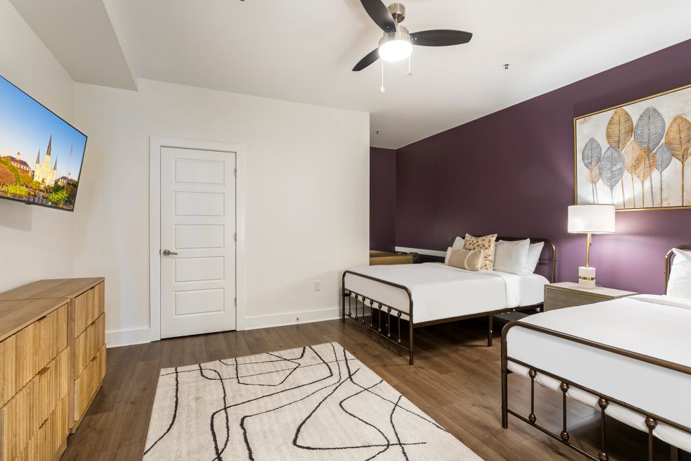 Nestled just a few blocks from the iconic French Quarter, this 4-bedroom condo in the California Building, managed, offers an exceptional stay. Perfect for accommodating large groups, the unit is fully furnished with bespoke interiors, modern appliances, and carefully chosen furniture, immersing you in the vibrant jazz scene and culinary delights of New Orleans.
