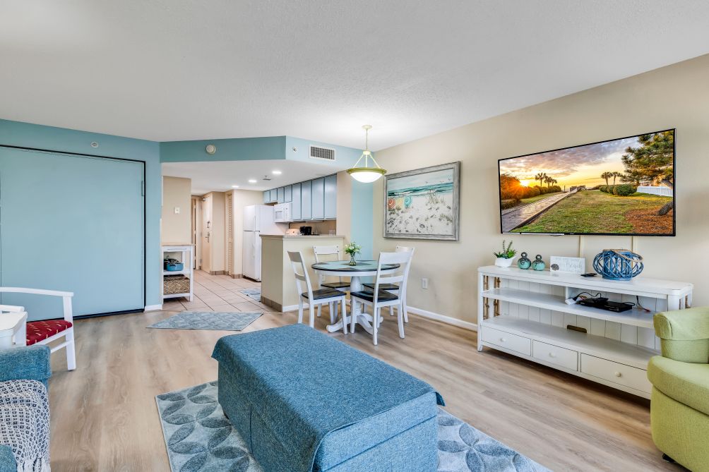 The kitchen, complete with modern appliances and a convenient breakfast bar, is ideal for culinary enthusiasts and casual dining. Your cozy one-bedroom condo offers a peaceful sanctuary with ample closet space, ensuring you have room for all your beach essentials.