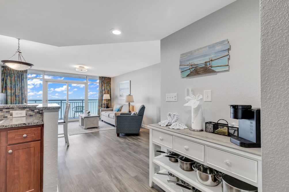 Welcome to your beautiful beachfront condo in Myrtle Beach, a perfect getaway for your vacation. As you step into this charming unit, you'll immediately be greeted by stunning views of the Atlantic Ocean. The spacious living area is thoughtfully decorated with comfortable furnishings, offering a cozy atmosphere for you and your guests.