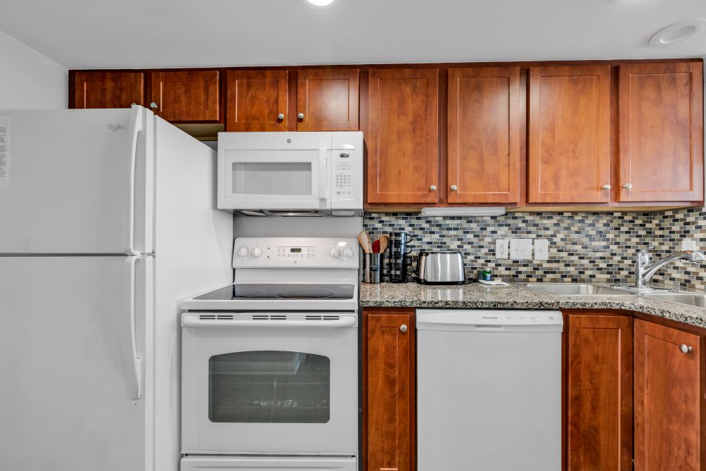 The kitchen is well-equipped with all the essentials you need to prepare your own meals. It includes a refrigerator, stove, oven, microwave, and all the cookware and utensils you might require. You can prepare delicious meals with ease while enjoying the beautiful ocean view from the kitchen window.