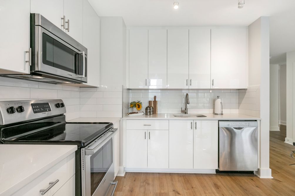 The state-of-the-art kitchen boasts high-end stainless steel appliances, pristine granite countertops, and ample storage, ideal for culinary enthusiasts and effortless entertaining.
