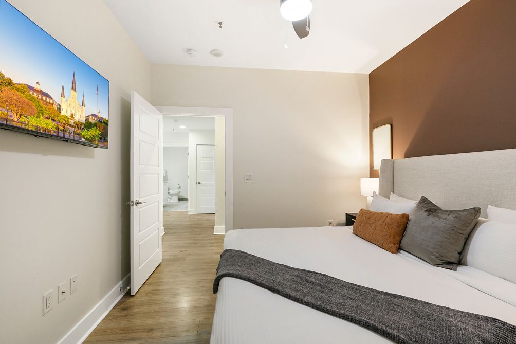 Enjoy breathtaking panoramic views of the New Orleans skyline through floor-to-ceiling windows, where the city's energy and charm become part of your everyday life.