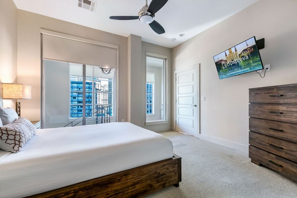 This elegant and spacious 2 level penthouse comes equipped with an amazing city view from your own private terrace where you can enjoy your morning coffee or an afternoon cocktail, modern design with high ceilings, full kitchen and bathroom amenities, a master bedroom with walk-in closets, a full bathroom and a spacious living room with a soft pull out sofa.