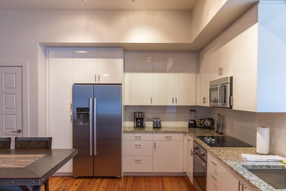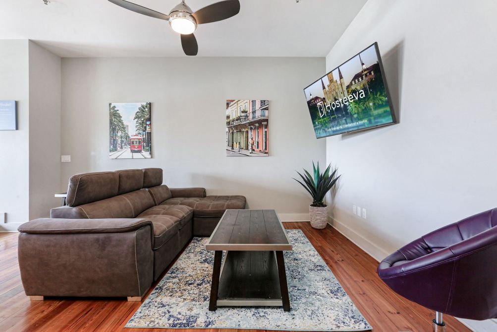 The penthouse features two levels with a living/dining room and a fully functional state of the art kitchen on the first level and bedrooms on the second level. The spacious terrace with NOLA skylines allows for a great small gathering of friends or a sunset watching for 2 on that special date night.