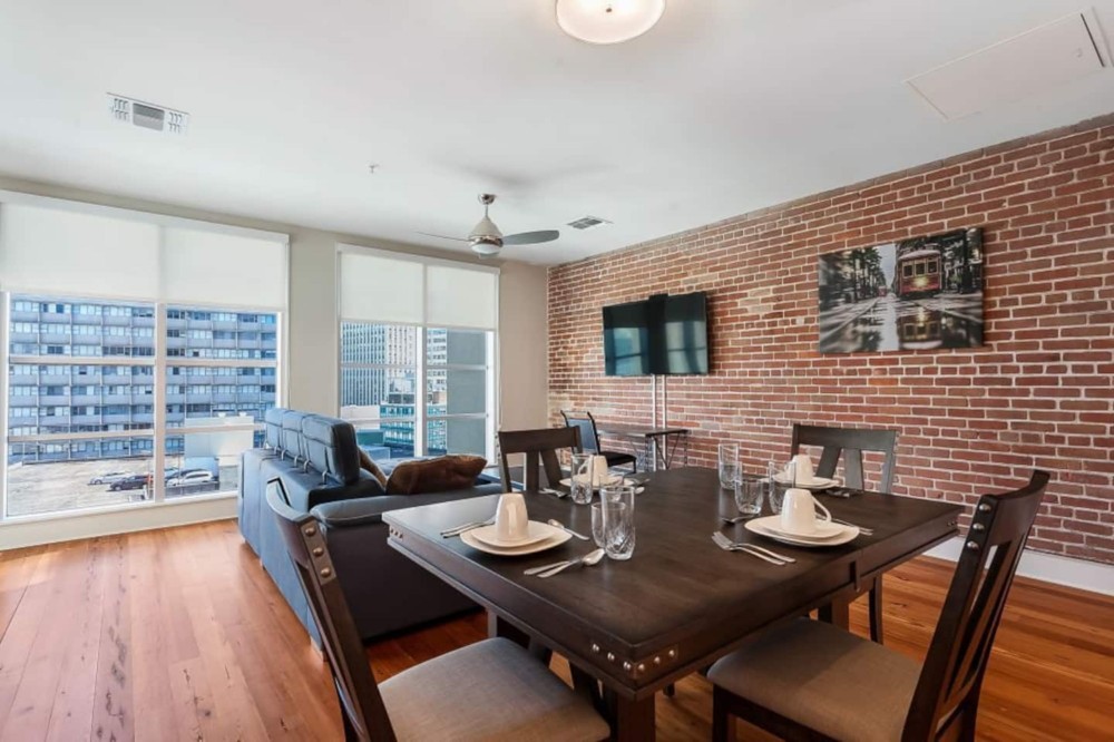 The penthouse features a living/dining room, a fully functional state of the art kitchen and a bedroom. The spacious terrace with NOLA skylines allows for a great small gathering of friends or a sunset watching for 2 on that special date night.