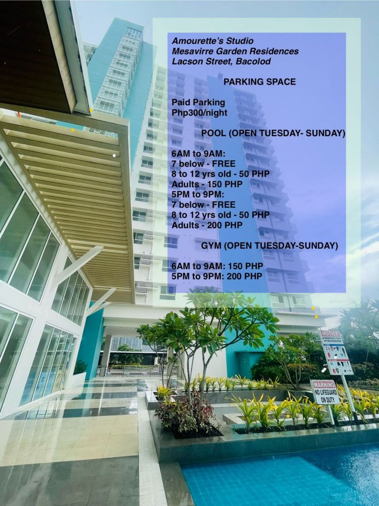 Amourette’s Studio boasts amenities for your enjoyment, including a refreshing outdoor pool for relaxation and a children's playground for family fun. Whether in Bacolod for business or leisure, this residence caters to your needs.