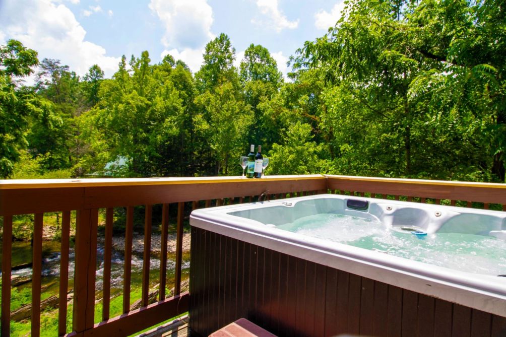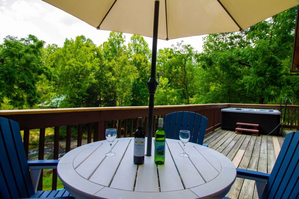 Relax in this charming 2 bedroom cabin, nestled on the Little Pigeon River. The floor plan is simple and quaint with a rushing smoothing swimmin’ hole.