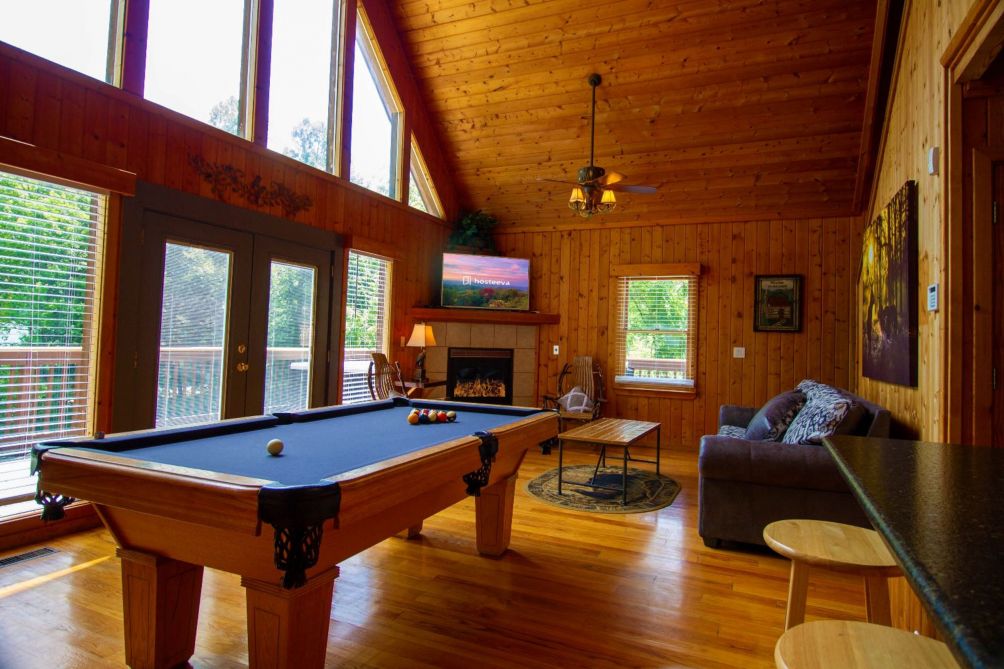 Guest bedrooms are on 2 levels with the main level suite with its own door leading out to the deck, and second-floor bedroom opening to a private balcony overlooking the river and the perfect place for starting or finishing your favorite book. For additional recreation, guests can engage a game of pool, or grab a raft and sit back and let your cares float away : )