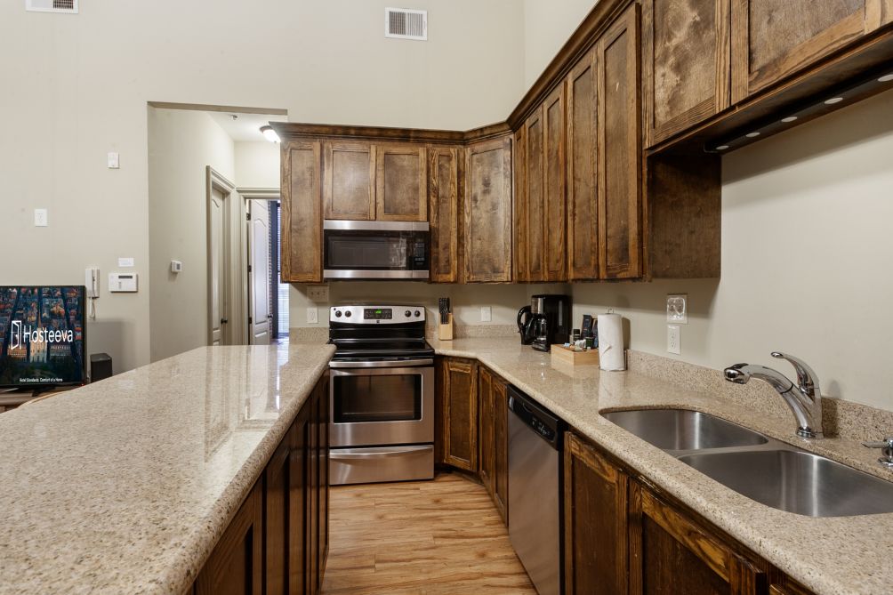 The fully equipped kitchen features high-end appliances including a dishwasher, microwave, oven, and refrigerator, making it easy to whip up your favorite meals. A cozy dining nook provides the perfect spot to enjoy breakfast or a quiet dinner at home.