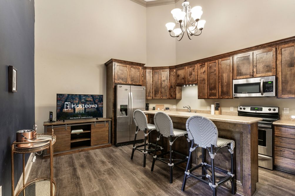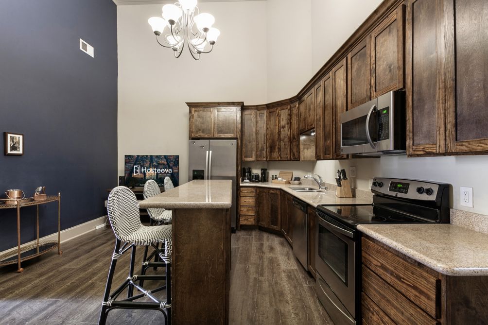 The fully equipped kitchen features high-end appliances including a dishwasher, microwave, oven, and refrigerator, making it easy to whip up your favorite meals. A cozy dining nook provides the perfect spot to enjoy breakfast or a quiet dinner at home.