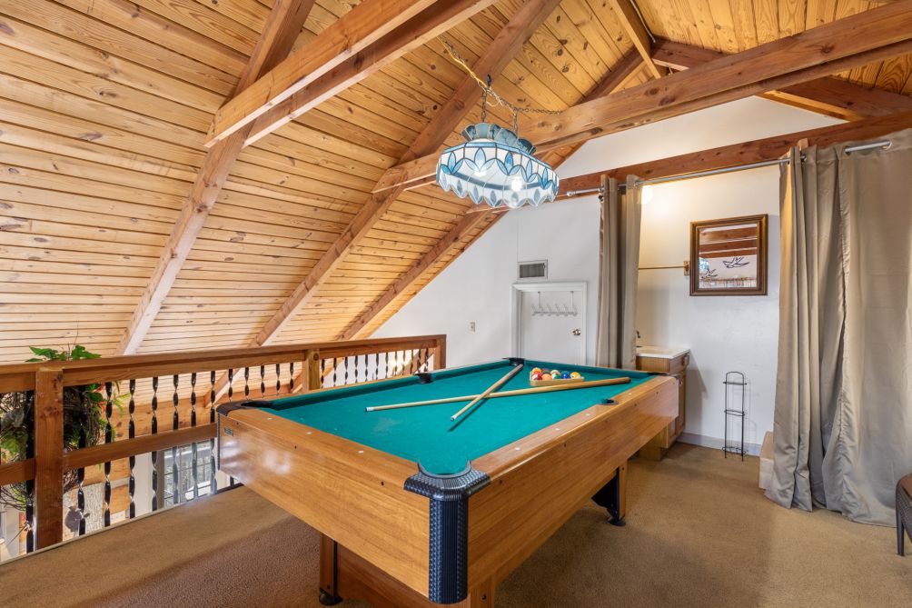 For indoor entertainment, head downstairs to the recreation area, where a flat-screen TV and pool table await.
