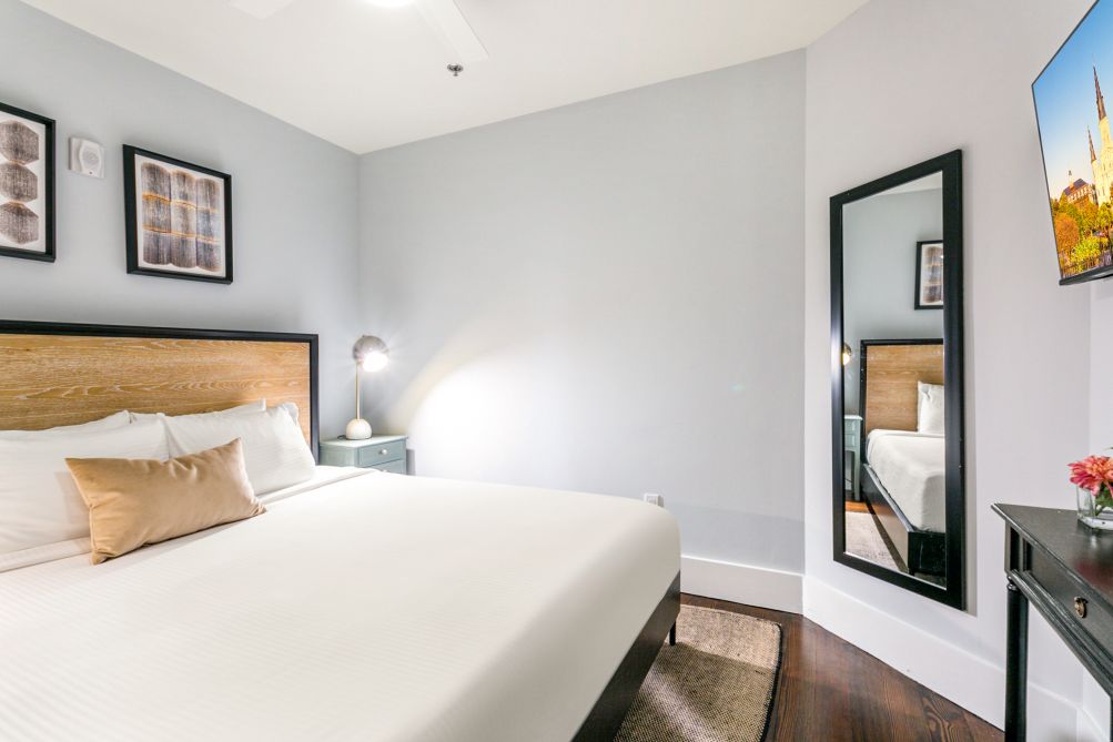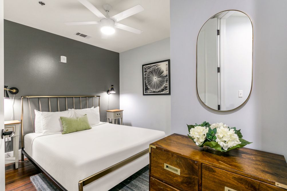 Welcome to your modern 5-bedroom, 1.5-bathroom luxury retreat at The Irish House. This thoughtfully designed unit combines elegant decor with modern amenities, ensuring a comfortable and stylish stay in the heart of New Orleans.