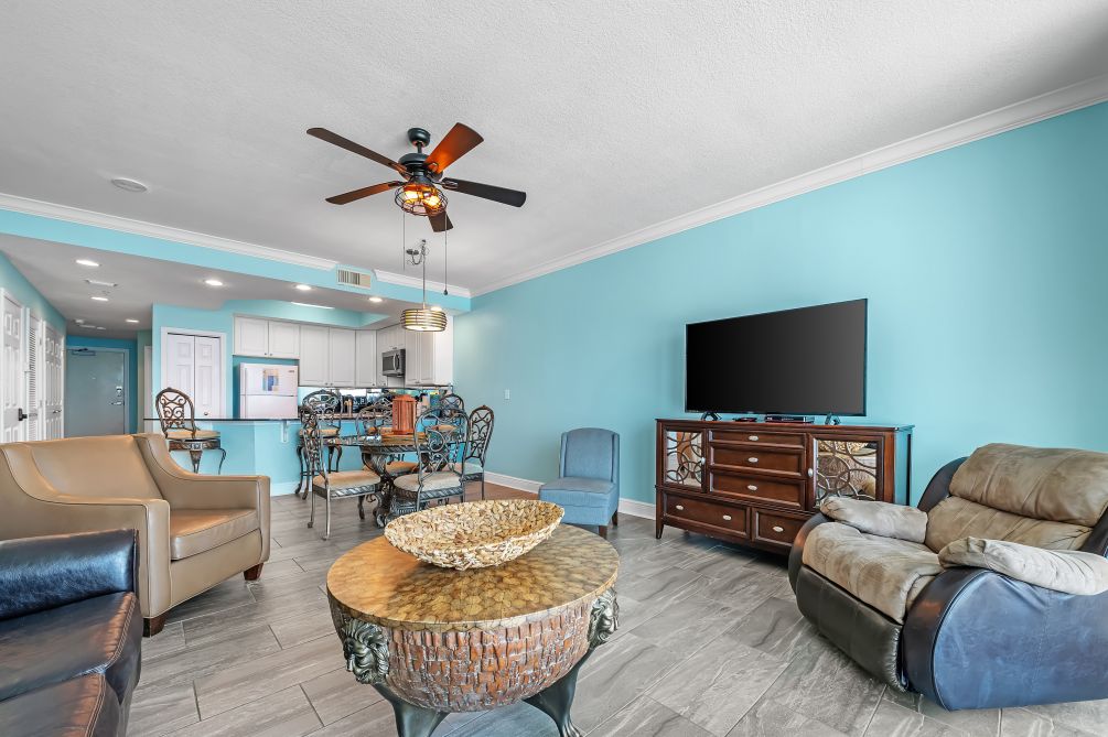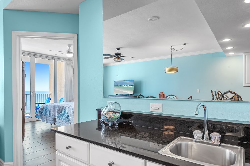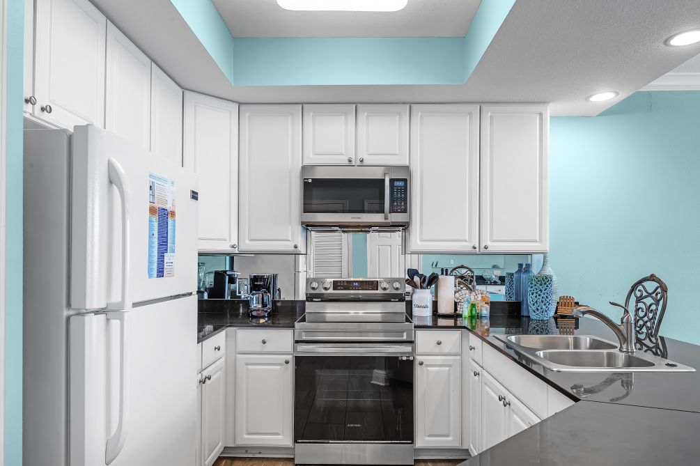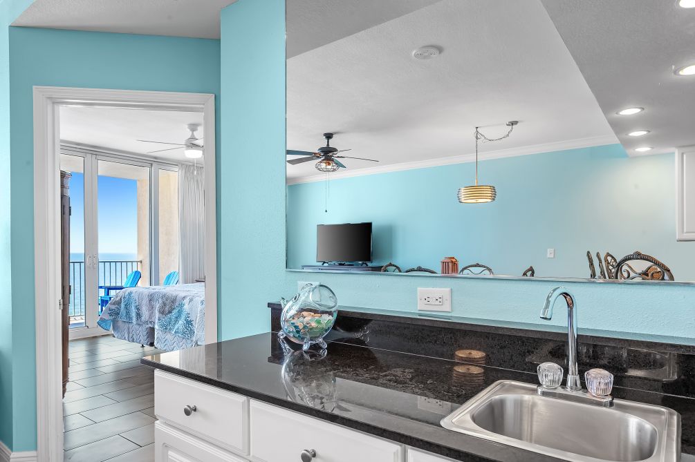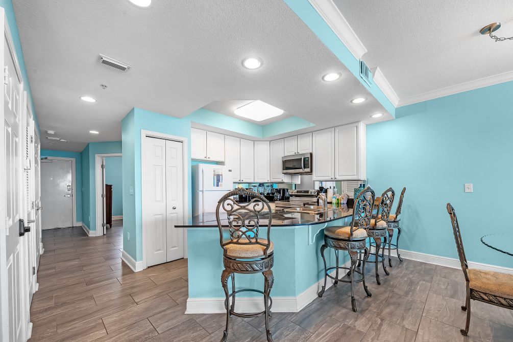 Enjoy a fully equipped kitchen with modern appliances, perfect for cooking your favorite meals. Step out onto the furnished balcony to enjoy your morning coffee. The Gulf front balcony is perfect for evening cocktails while soaking in the panoramic views and gentle gulf breeze.