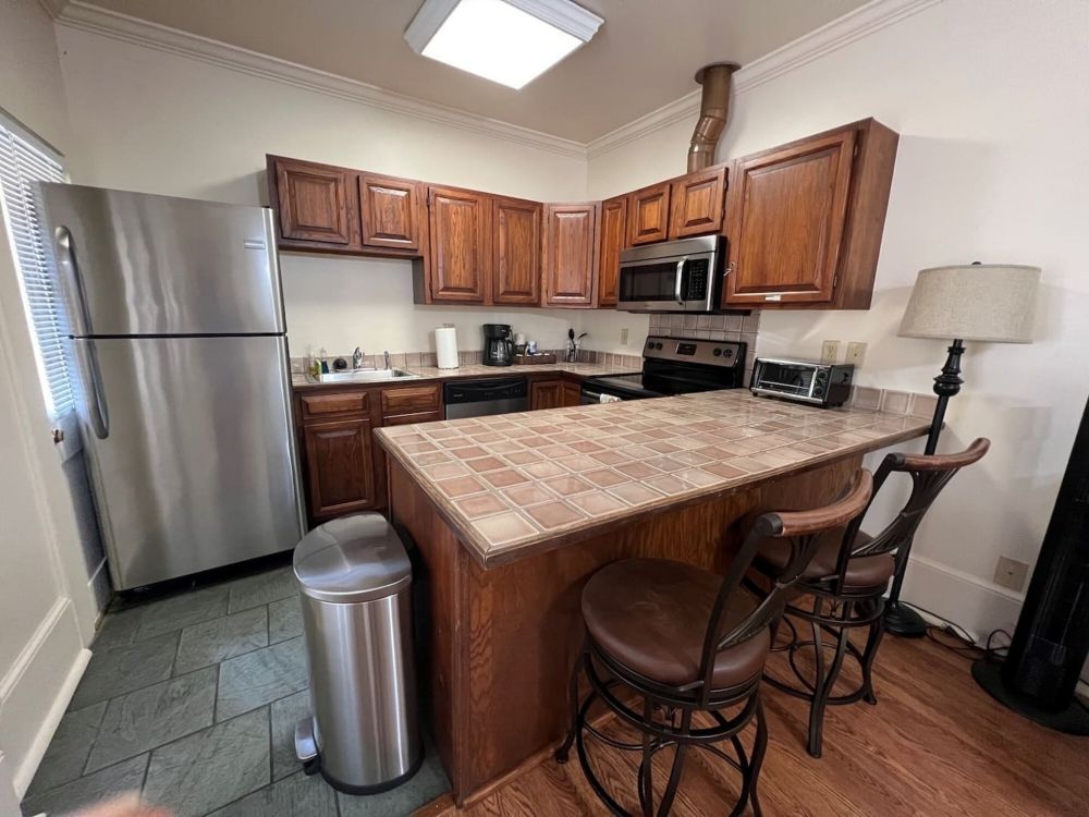 Completely furnished modern kitchens, including all new stainless steel appliances, Stove/Oven, Refrigerator with built in ice maker, microwave oven, dishwasher, disposal, and other small appliances. Dishes, silverware, glassware and other miscellaneous utensils are furnished. Cable TV and Free Wi-Fi is available throughout the property.