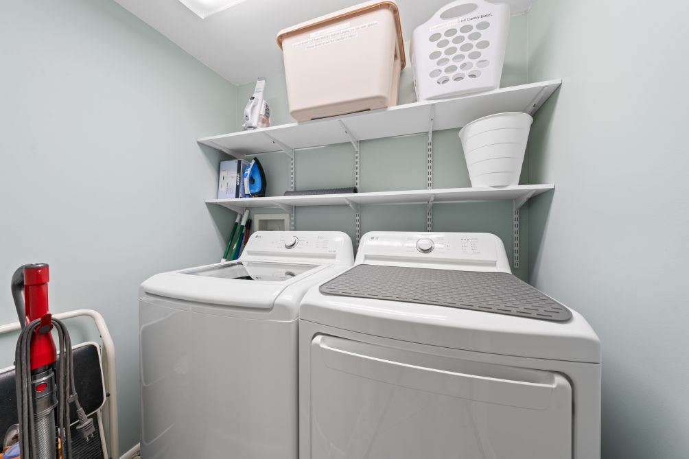 The fully equipped kitchen makes dining in a breeze, complete with modern appliances, cookware, and a dining table that seats six.
