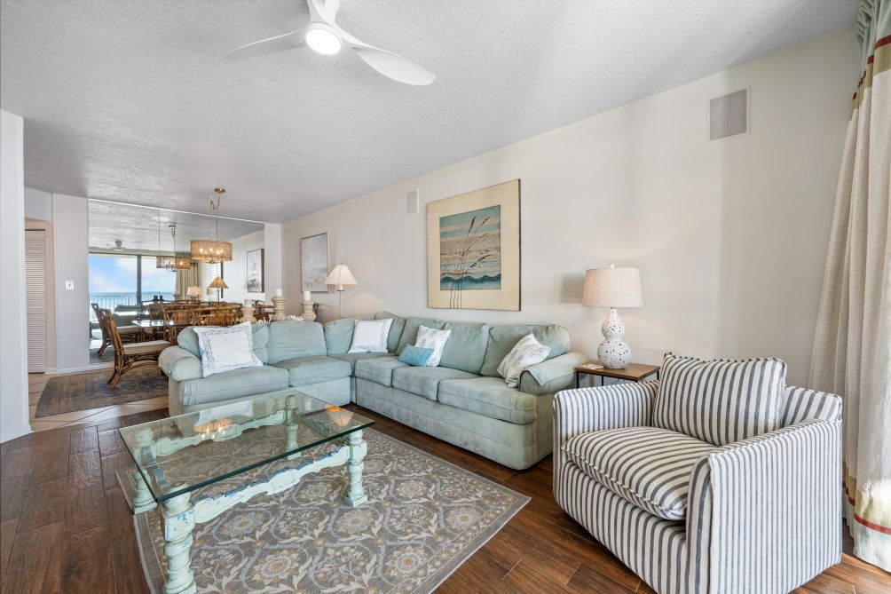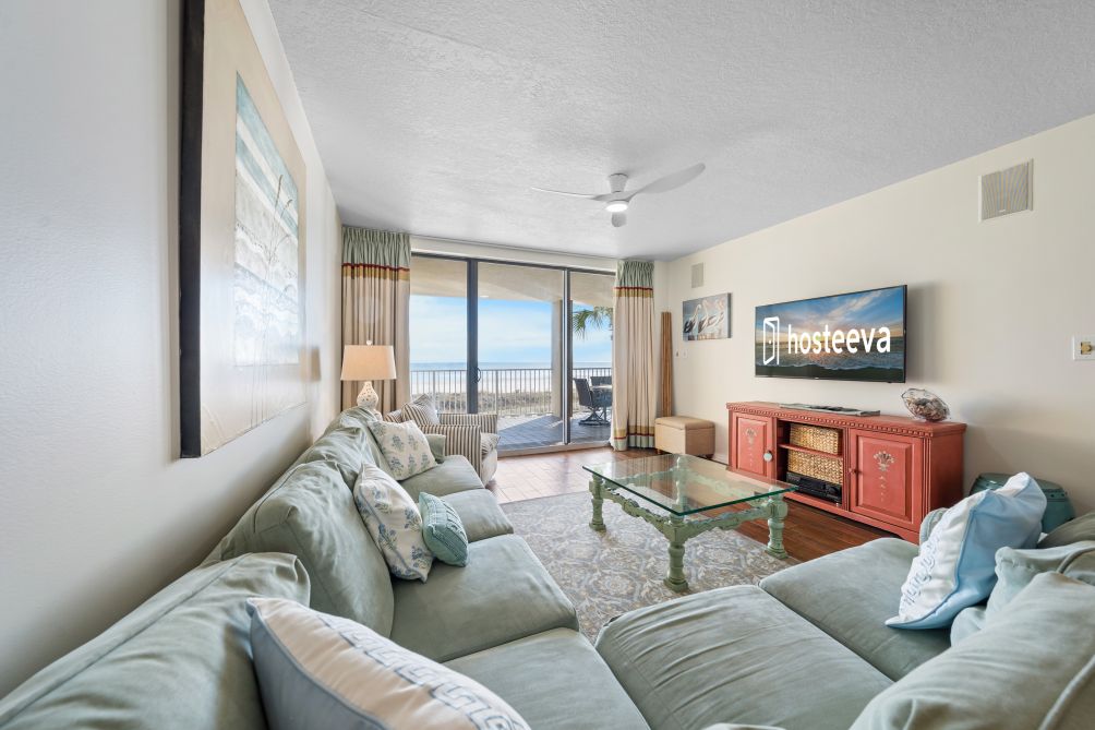 Welcome to this beautiful 3-bedroom condo in Orange Beach, perfect for up to 10 guests. The spacious living room is perfect for gathering with family and friends, featuring a smart TV for your entertainment.