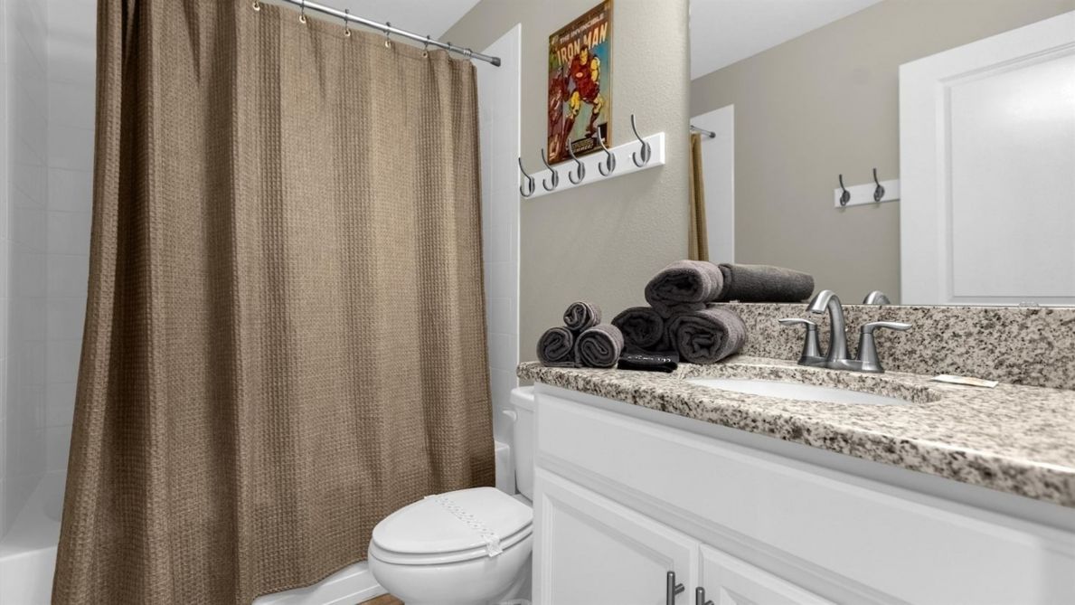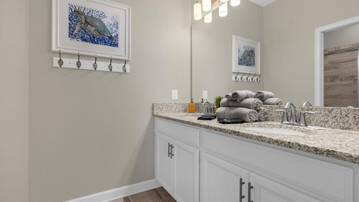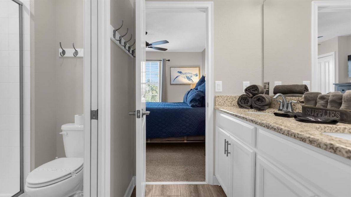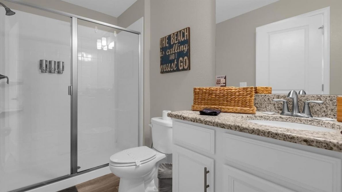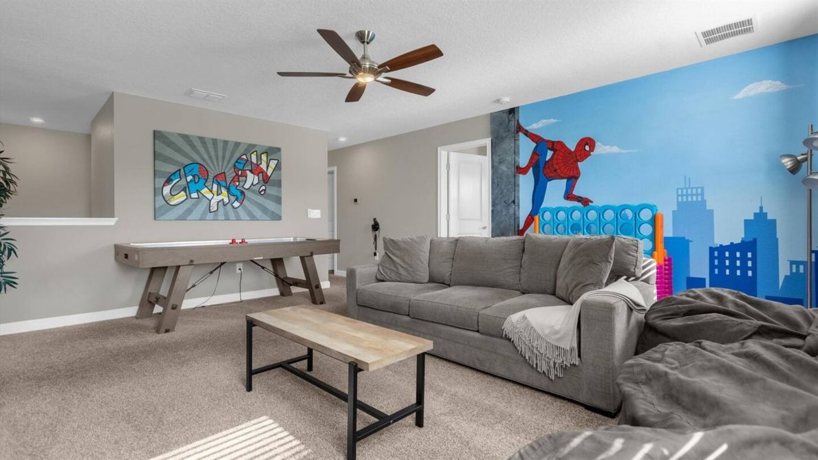 The five upstairs bedrooms are set to appeal to families travelling together by combining one King Suite with a Disney Themed Bunk suite sharing a jack-and-jill full bathroom. There is the enlarged Owner’s en suite featuring its own soaking tub as well as two other king ensuites and a second Star Wars-themed bunk room that utilizes a full bathroom across the hallway, accounting for 3 king suites, two themed bunk rooms and four full baths upstairs.