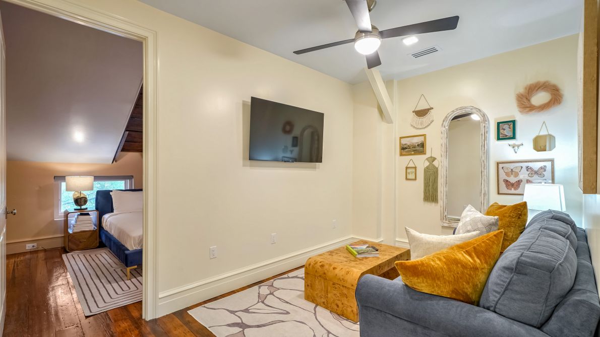 Bonsoir! French for “good evening” – that is exactly what you will have at our brand new renovation of this beautiful historic building in downtown New Orleans. You’ll sleep deeply and comfortably between your outings into the City, with the best that the City has to offer within steps of your residence. Experience the seamless blend of historic charm and contemporary luxury at the Bonsoir Building in New Orleans’ hip Warehouse District — with easy access to the Caesar’s Superdome and the Smoothie King Center. Our style honors the history of the building while bringing in the most modern and timeless trends of maximalism for a luxurious, but fun vibe. The Bonsoir Building is a 2024 renovation of a certified historic Warehouse District mansion with classic New Orleans charm. This building dates back to pre-1876 when it was first used as a residence, but has been home to a number of uses over its 150+ years of life! Our reimagination of this building restores its historic splendor with all the modern amenities you would expect in 2024, but with sultry and fun twists in every unit. --- The Space --- Our 5 BR accommodation encompasses the entire top floor of the building, with private elevator access to your floor and skylights within the units. The units do not connect internally, but are next to each other, and the upper floor of the building is all yours! A private living room space with a sofa bed allows for what can easily and comfortably be used as a 6th bedroom! As our guest, you’ll enjoy up to three times the space of traditional short-term rentals, a full kitchen, washer/dryer, free high-speed wifi, comfortable beds, and spacious living areas for relaxing, entertaining, and remote working. --- Tell Your Story --- Our properties aren't just places to stay; they're stories waiting to be told. Write your own chapter in boldly renovated landmark accommodations that blend old-world charm and contemporary luxury for a truly singular experience. Each legendary Standuke property is repurposed with imagination and vision. With spacious vacation rentals in New Orleans and San Antonio, we’ve created the perfect stay for the modern adventure-seeker. We would love to host you. Book confidently knowing that we are professional hospitality operators: we’ve got you covered with seamless, 24/7 check-ins, a staff person on call at all times, and professional cleaning that eliminates the need for check-out chores. --- The Standuke Promise --- Founded with a passion for preserving history while embracing the present moment, Standuke transforms historic buildings into spirited retreats for the modern adventurer. Combining original charm with contemporary design and approachable luxury, we offer unforgettable, immersive stays in incredible cities. Experience the Standuke difference with 24/7 remote check-ins, curated local guidance, and zero guest chores for a stress-free visit. A Sustainable Legacy At Standuke, we celebrate the original craftsmanship of historic architecture by breathing fresh spirit into once-abandoned buildings, transforming them into vibrant, eco-friendly properties. We’re passionate about repurposing a whole building’s worth of materials as a way to preserve historical significance while prioritizing environmental stewardship and care for local communities. What Drives Us * Authenticity Celebrating the unique historical and cultural significance of each property, with an emphasis on the real neighborhood vibe. * Sustainability Honoring historic properties by preserving their rich heritage while supporting local communities and caring for the environment. * Artistry Focusing on detailed, artistic renovations and bold, unconventional designs for a distinct and memorable feel. * Luxury Providing upmarket, elevated stays that offer the premier amenities you’d expect from a high-class accommodation—without the stuffiness. * Ease Delivering stress-free stays with seamless check-ins, a staff person on-call 24/7, and pro cleaners who eliminate the need for check-out chores. Book with us and let your New Orleans adventure begin!